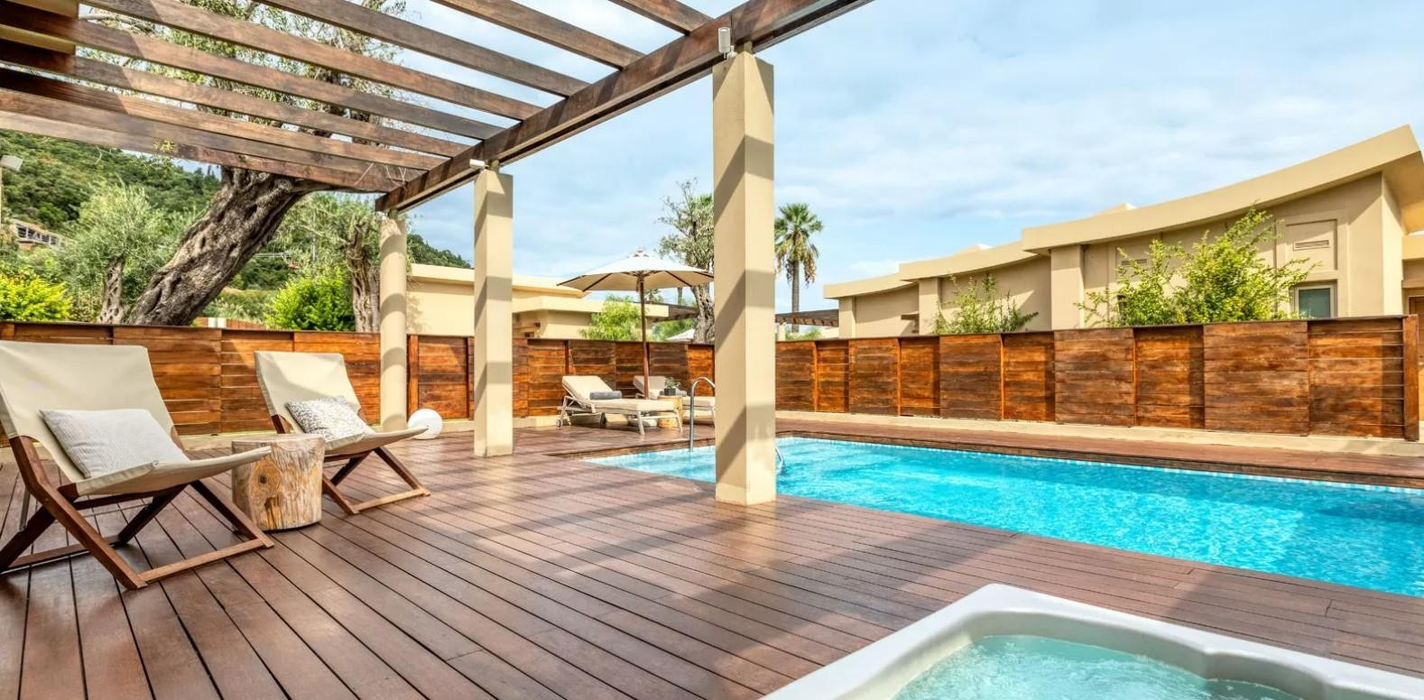 - Prviate Pool-pavilonok - tágasabbak, kertre nézők, kültéri jacuzzi, saját medence, az exkluzív Pavilion-részben helyezkednek el