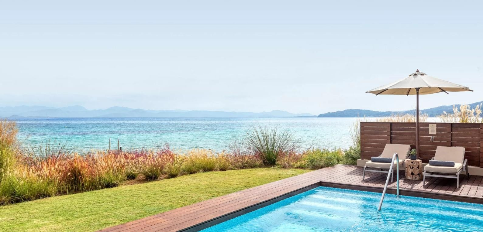 - Waterfront Prviate Pool-pavilonok - tágasabbak, kültéri jacuzzi, saját medence, az exkluzív Pavilion-részben helyezkednek el, közvetlenül a tengerparton