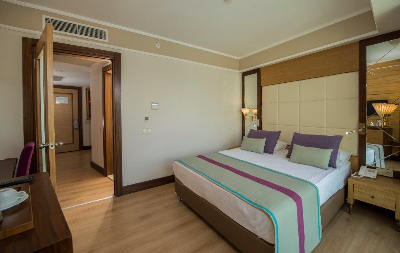 Fekvése: A 2015-ban megnyílt, kiváló ár-érték arányú 5 csillagos szálloda az antalyai repülőtértől 55 km-re, Side központjától 5 km-re helyezkedik el, Kumköy üdülőhelyen. A hotel saját, homokos strandja a komplexumtól kb.1 km-re található, mely a hotel által üzemeltetett, ingyenes shuttle járattal is elérhető. A környező üdülőhelyekre, illetve Side ókori romvárosába helyi járatú autóbusszal (dolmussal), vagy taxival juthatunk be. Szolgáltatások: 6 medence napernyőkkel és napozóágyakkal (egyikük csak felnőtteknek), gyermekmedence, aquapark 10 csúszdával, mini aquapark a gyermekklubban, főétterem, 4 a’la carte étterem, 5 bár, strandbár, nappali animációs programok, esti show-műsorok, miniklub (4-12 éves korig), fitneszterem, törökfürdő, szauna, asztalitenisz, darts, aerobik, vízitorna, teniszpálya, WIFI. A szálloda saját strandján a napernyők, napozóágyak és strandtörölközők ingyenesen igénybe vehetők. A part a hotel ingyenes shuttle járataival is megközelíthető (meghatározott időközönként közlekedik). Térítés ellenében: Spa és wellness szolgáltatások, masszázs, fodrászat, üzletek, mosoda, orvosi ellátás, teniszfelszerelés (letét ellenében), vízi sportok, gyermekfelügyelet. Elhelyezés: A szobák mindegyike rendelkezik központi légkondicionálóval, telefonnal, hajszárítóval, műholdas LCD tévével, minibárral, bérelhető széffel, WIFI internetkapcsolattal és erkéllyel vagy terasszal. A családi szobák két, ajtóval elválasztott hálószobával rendelkeznek; az A típusúak egy, a B típusúak két fürdőszobával felszereltek. Ellátás: All inclusive: reggeli, ebéd és vacsora büférendszerben, kései reggeli, délutáni snackek, éjféli leves (23:00-24:00 között), korai reggeli minibüfé (0:00-06:00 között), sütemények, gofri és fagylalt (bizonyos időpontban), 4 a’la carte étterem (török, olasz, kínai és hal; egy alkalommal, előzetes foglalással), számos helyi alkoholos és alkoholmentes ital (10:00-24:00 között), naponta víz a minibárból. Térítés ellenében: egyéb étel- és italfogyasztás, import és palackozott italok, palackozott borok, frissen facsart gyümölcslevek, vattacukor, popcorn, szobaszerviz.Egyéb: