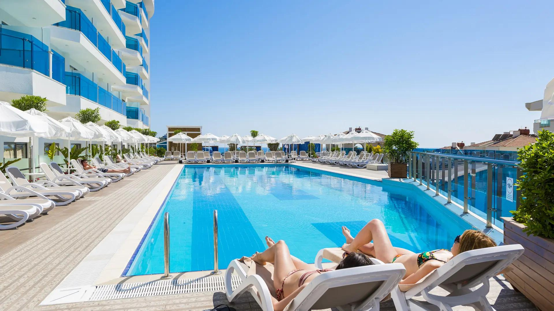 Forró napokon kettő medence - egy benti és egy kinti - gondoskodik a hűsítő élményről. A vízicsúszda kicsiknek és nagyoknak is élményt nyújt. A pihenésre kiváló lehetőséget nyújt a terasz. A mozgásra vágyók az alábbi lehetőségek közül választhatnak: boccia és strandröplabda. A hotel vízi sportokat is kínál, többek között aqua-fitnesst, valamint felár ellenében jet-skyzést és banánozást. Jet-skyzés és banánozás a partnerek kínálatában szerepel. A vendégeket a szálláshelyen színes beltéri sportkínálat várja, edzőteremmel, asztali tenisszel, darts-cal, gimnasztikával és aerobikkal. A szállás wellnessrészlegének szolgáltatásai: szauna és törökfürdő, valamint felár ellenében rendelkezésre áll egy szépségszalon és masszázs kezelések. A szabadidős kínálatban szerepelnek továbbá: szórakoztatóprogramok, az élő zene, egy miniklub és egy minidiszkó. Copyright GIATA 2004 - 2026. Multilingual, powered by www.giata.com for client no. 703822
