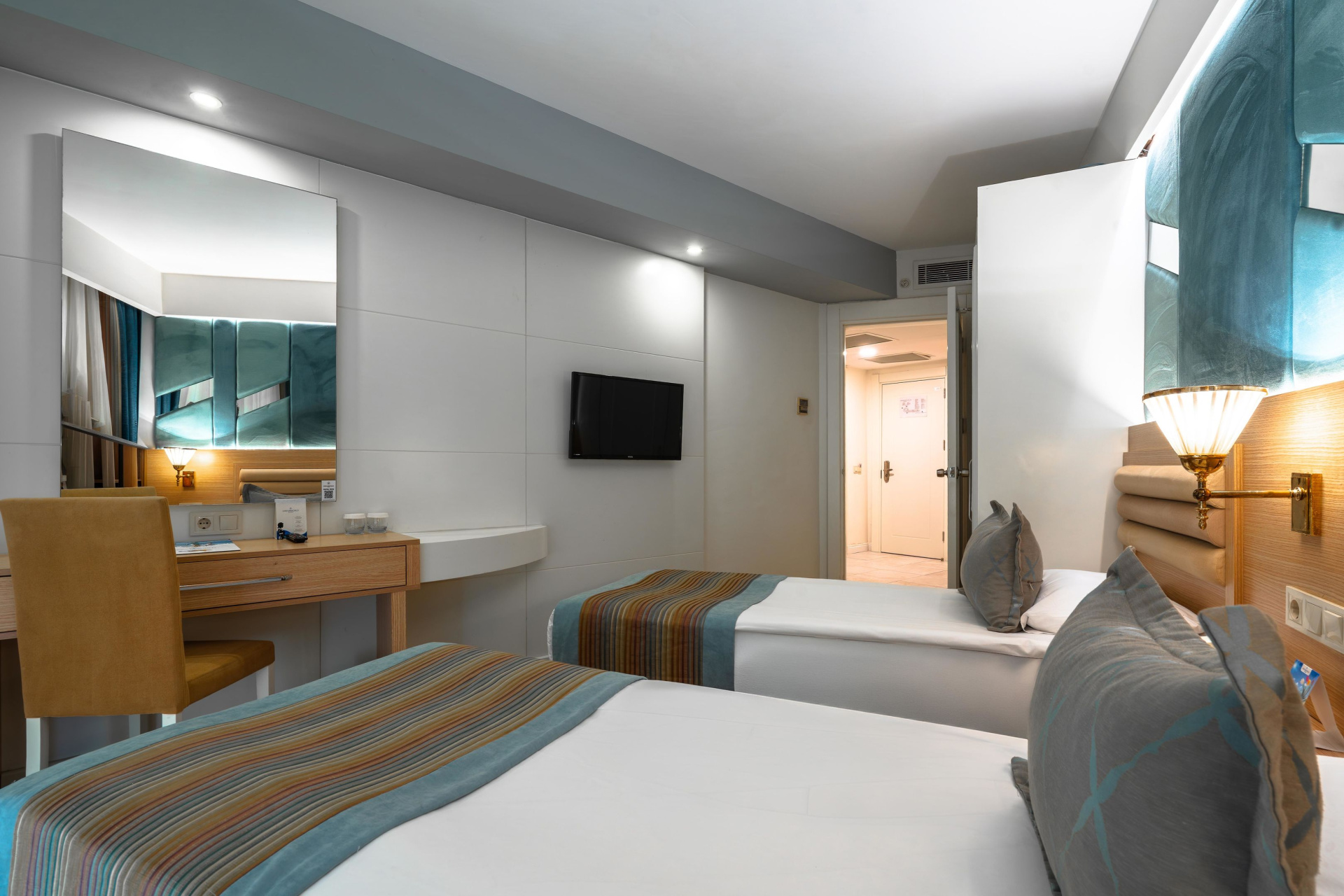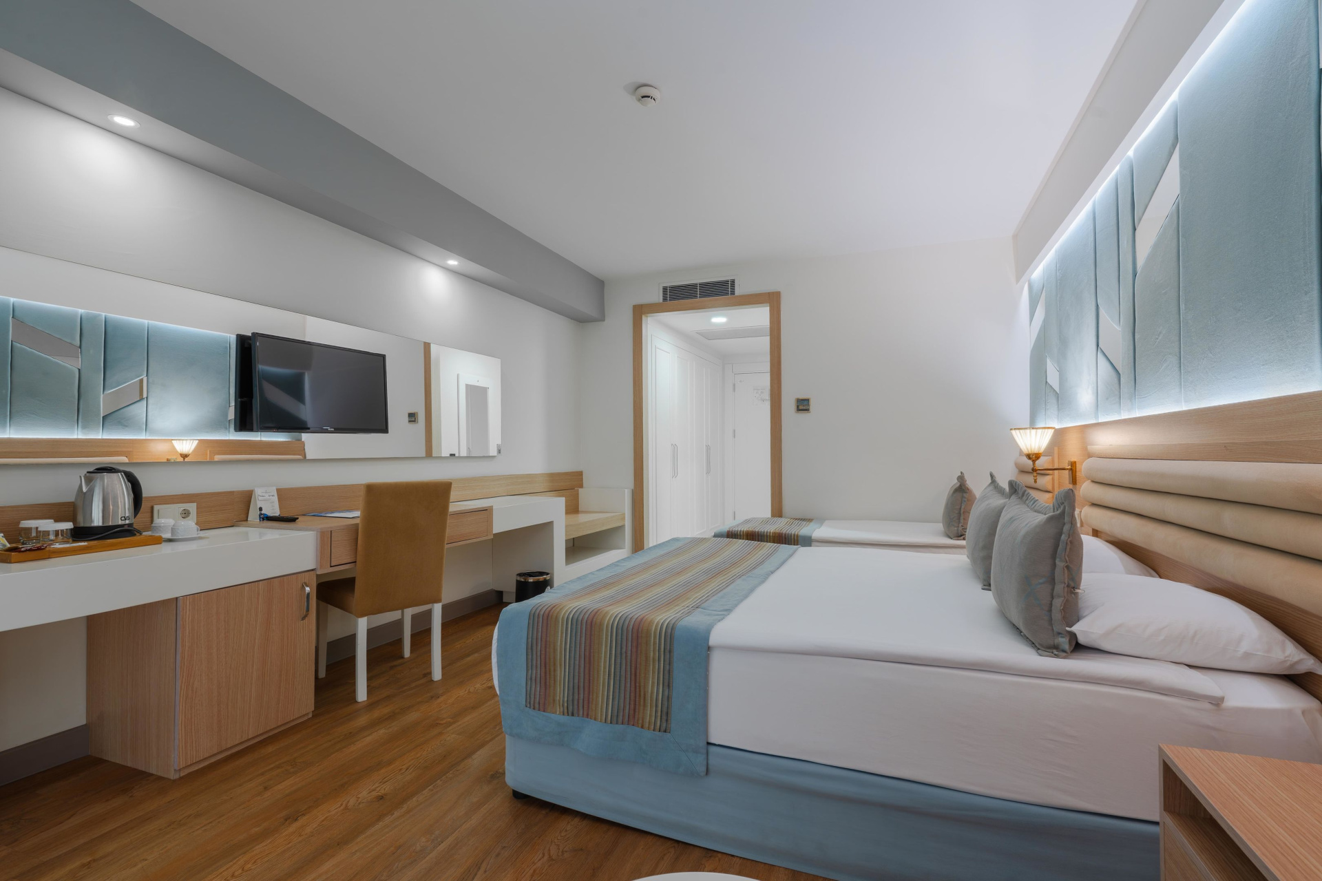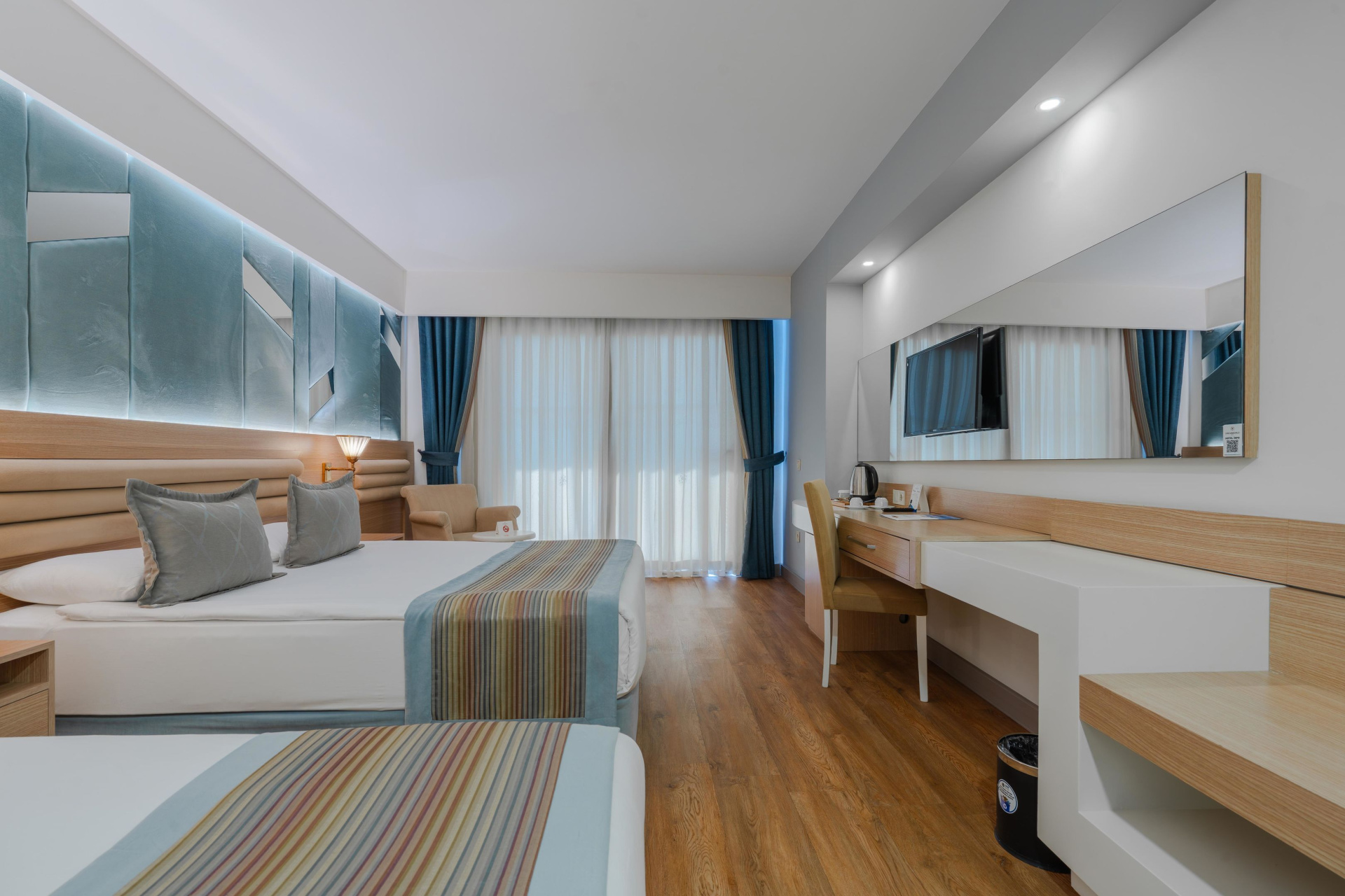 A szobákat légkondicionáló berendezéssel, központi fűtéssel és fürdőszobával szerelték fel. A legtöbb szoba felszereltségét terasz egészíti ki, amely tökéletes kikapcsolódást nyújt. A legtöbb szoba kellemes légkörét oldalsó, tengerre néző kilátás teszi teljessé. Különálló hálószobák foglalására is lehetőség van. Pótágy igényelhető. Egy minibár, valamint díj fizetése esetén egy széf is rendelkezésre áll. Az alapfelszereltséghez tartozik egy tea-/kávéfőző is. A nyaralás kényelmét szolgálja az internet-hozzáférés, a telefon, a TV-készülék és WiFi. A szobákban szobapapucs is található. Mozgáskorlátozottaknak kialakított szobák is foglalhatóak. A fürdőszobában zuhanyzó található. A fürdőszobában található hajszárító, kozmetikai tükör, fürdőköpenyek és telefon a mindennapi kényelmet szolgálják. Családi szobát és nem dohányzó szobát is foglalható.