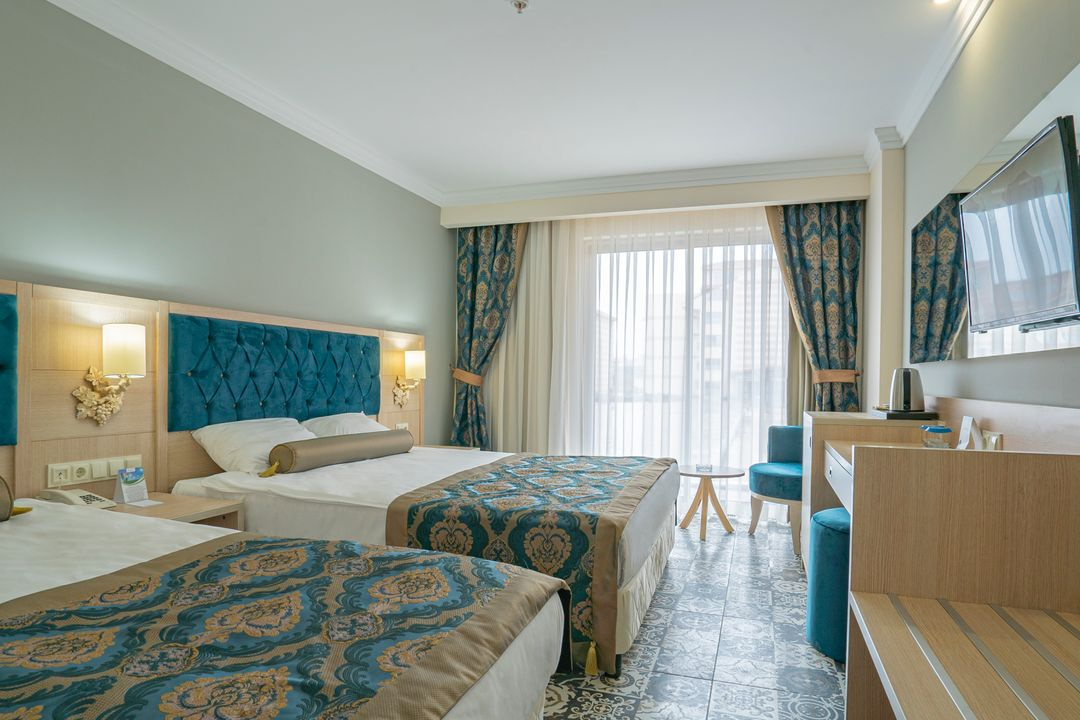 Fekvése: A 2020-ban megnyílt, modern, 500 szobás, kiváló ár-érték arányú 5 csillagos szálloda az antalyai repülőtértől 50 km-re, Side központjától 10 km-re helyezkedik el, Colakli üdülőhelyen. A hotel saját, homokos strandja a komplexumtól kb. 400 méterre található, mely egy rövid sétával, vagy a hotel által üzemeltetett, ingyenes shuttle járattal is elérhető. A környező üdülőhelyekre, illetve Side ókori romvárosába helyi járatú autóbusszal (dolmussal), vagy taxival juthatunk be. Szolgáltatások: 2 medence napernyőkkel és napozóágyakkal (egyikük csak felnőtteknek), gyermekmedence, aquapark, mini aquapark gyermekeknek, belső medence, főétterem, 3 a’la carte étterem, 2 bár, strandbár, nappali animációs programok, esti show-műsorok, miniklub (4-12 éves korig), fitneszterem, törökfürdő, szauna, asztalitenisz, darts, aerobik, vízitorna, strandröplabda, WIFI. A szálloda saját strandján a napernyők, napozóágyak, matracok és a strandtörölközők ingyenesen igénybe vehetők. A part a hotel ingyenes shuttle járataival is megközelíthető (meghatározott időközönként közlekedik). Térítés ellenében: Spa és wellness szolgáltatások, masszázs, fodrászat, üzletek, mosoda, orvosi ellátás, vízi sportok, gyermekfelügyelet. Elhelyezés: A szobák mindegyike rendelkezik központi légkondicionálóval, telefonnal, hajszárítóval, műholdas LCD tévével, minibárral, bérelhető széffel, WIFI internetkapcsolattal és erkéllyel. Az 1. típusú standard szobák 22, a 2-es típusúak kb. 25 nm alapterületűek. Az „A” és a „B” típusú családi szobák azonosan berendezettek és két, ajtóval elválasztott hálószobával rendelkeznek, méretükben azonban eltérnek; „A típusú” családi szobák 40-45 nm alapterületűek, maximum kapacitásuk 5 felnőtt, míg a „B típusú” családi szobák kb. 30-35 nm-esek, maximum kapacitásuk 4 felnőtt. Ellátás: All inclusive: reggeli, ebéd és vacsora büférendszerben, kései reggeli, vacsoránál gyermekbüfé, délutáni snackek, éjféli leves (23:00-23:30 között), korai reggeli minibüfé (0:00-06:00 között), sütemények, gofri és fagylalt (bizonyos időpontban), 3 a’la carte étterem (török, olasz és hal; egy alkalommal, előzetes foglalással), számos helyi alkoholos és alkoholmentes ital (10:00-24:00 között), naponta víz a minibárból. Térítés ellenében: egyéb étel- és italfogyasztás, import és palackozott italok, palackozott borok, frissen facsart gyümölcslevek, vattacukor, popcorn, szobaszerviz.Egyéb: