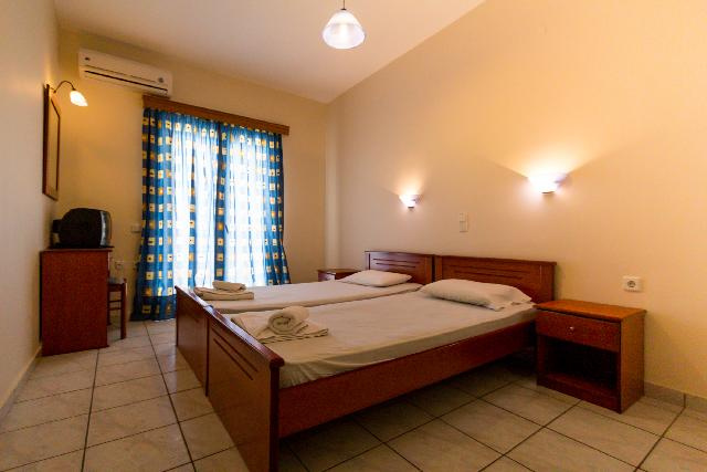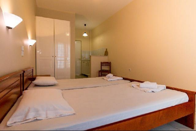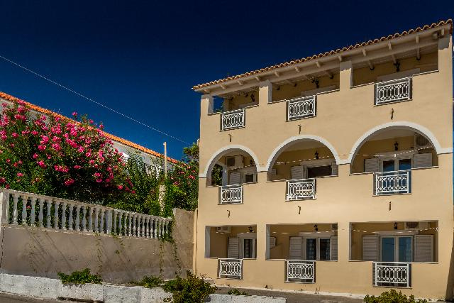 Fekvése: A település csendesebb részén elhelyezkedő 3 szintes, 11 szobás, kedves család által üzemeltetett apartmanház. A homokos tengerparttól való távolsága kb. 100 m, a központtól kb. 300 m (tavernák, kávézók, üzletek, vendéglők). Szolgáltatások: mini market, ingyenes WIFI, parkolási lehetőség (az utcán) szolgálják a vendégek kényelmét. Felár ellenében széf, légkondicionálás helyben kérhető/igénybe vehető. Elhelyezés: 2 ágyas stúdió: Célszerűen berendezett egy légterű helyiség, felszerelt konyhasarok, hűtő, zuhany, balkon/terasz. A stúdiók a földszinten és az emeleten találhatók, az emeleten elhelyezkedő szobák tengerre néző kilátással rendelkeznek, a földszinti szobák pedig részben tengerre nézők. A földszinti szobákat egy lefelé vezető lépcsősoron keresztül lehet megközelíteni, ettöl függetlenül ezen szobatípusok úgyanúgy erkélyesek (az utca szintjével egy síkban helyezkedik el az erkély), illetve felszereltségében teljesen megegyezik az emeleti szobákéval. A 2 db korlátozott kilátású és pótágyazható stúdió pedig az első emeleten helyezkedik el, amelyből az egyik az utcafrontra, míg a másik szoba a szemközti épületre néz. Ellátás: ÖnellátásEgyéb: