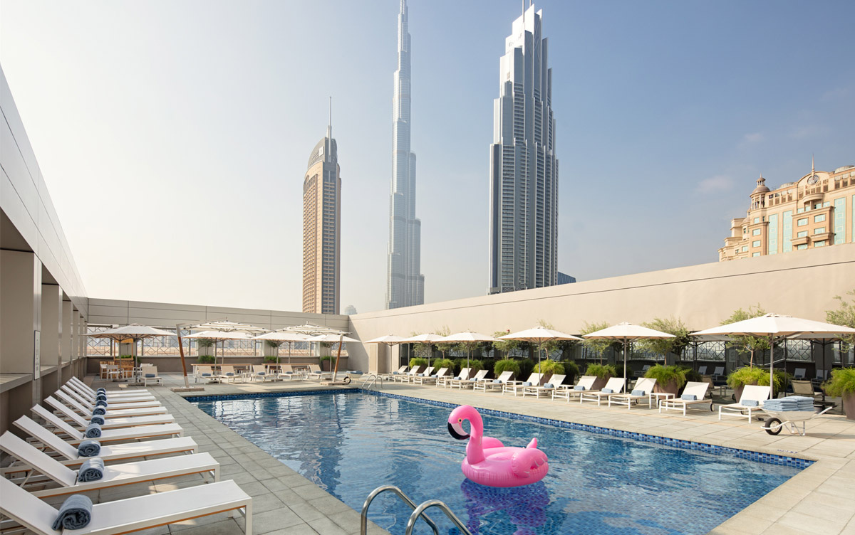 A világ legnagyobb bevásárló- és szórakoztatóközpontja, a The Dubai Mall sétával megközelíthető, akárcsak a Dubai szökőkút és a Burj Khalifa, mely a világ legmagasabb épülete jelenleg. A szálloda stílusában fiatalos és lendületes vonalat képvisel, szobái nem pótágyazhatók, de összenyitható szobák igényelhetők.