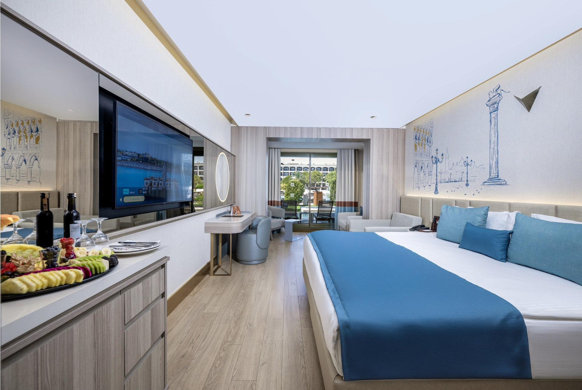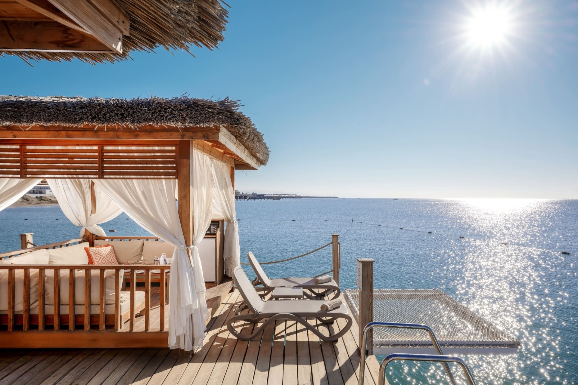- Swim-up-suitek - hálószoba és nappali, jacuzzi a teraszon, közvetlen kijárattal a medencéhez, teraszosak