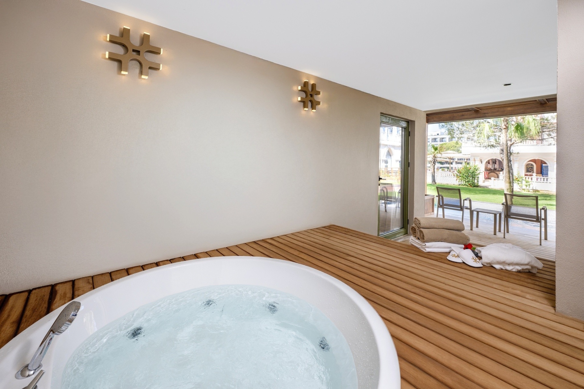 - Deluxe-Junior-suitek - hálószoba és nappali, jacuzzi a teraszon