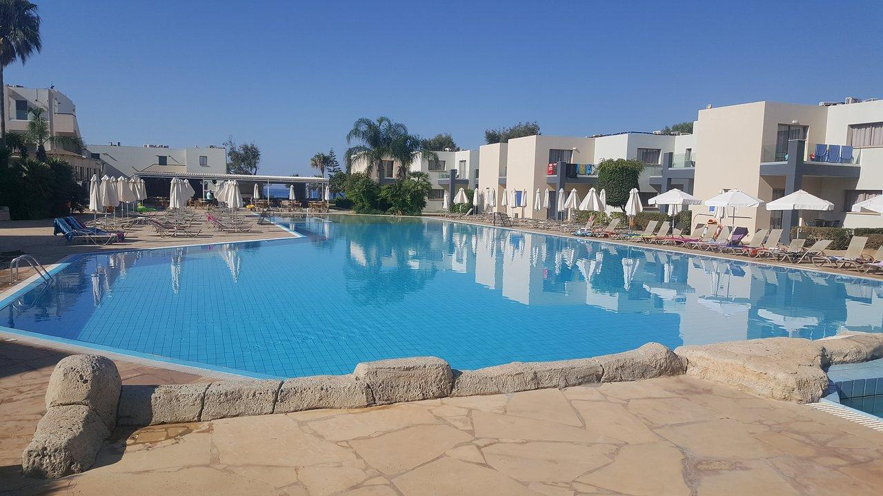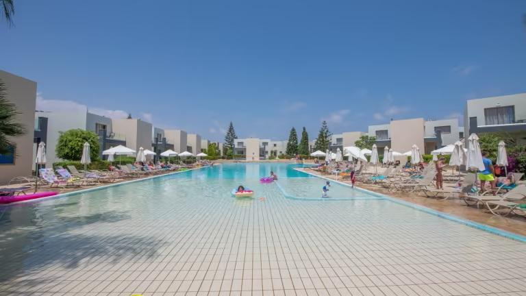 A szálloda területét mediterrán növényzet, szépen gondozott kertek és alacsony építésű, falusias -görögfalu jellegű- épületek határozzák meg.