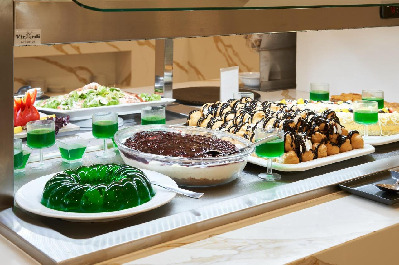 Étkezés: all inclusive ellátás, benne: reggeli (07:30-10:00), ebéd (12:30-14:30) és vacsora (19:00-21:30), snack ételek és szendvicsek (10:30-12:00 és 15:00-18:00 óra között), jégkrémek, korlátlan italfogyasztás 10–24 óra között (kivéve import alkoholos italok). A központi étterem a mediterrán és a nemzetközi konyha ízeit kínálja, friss zöldségekkel, ciprusi specialitásokkal és tematikus estekkel (ciprusi est, olasz est stb.).