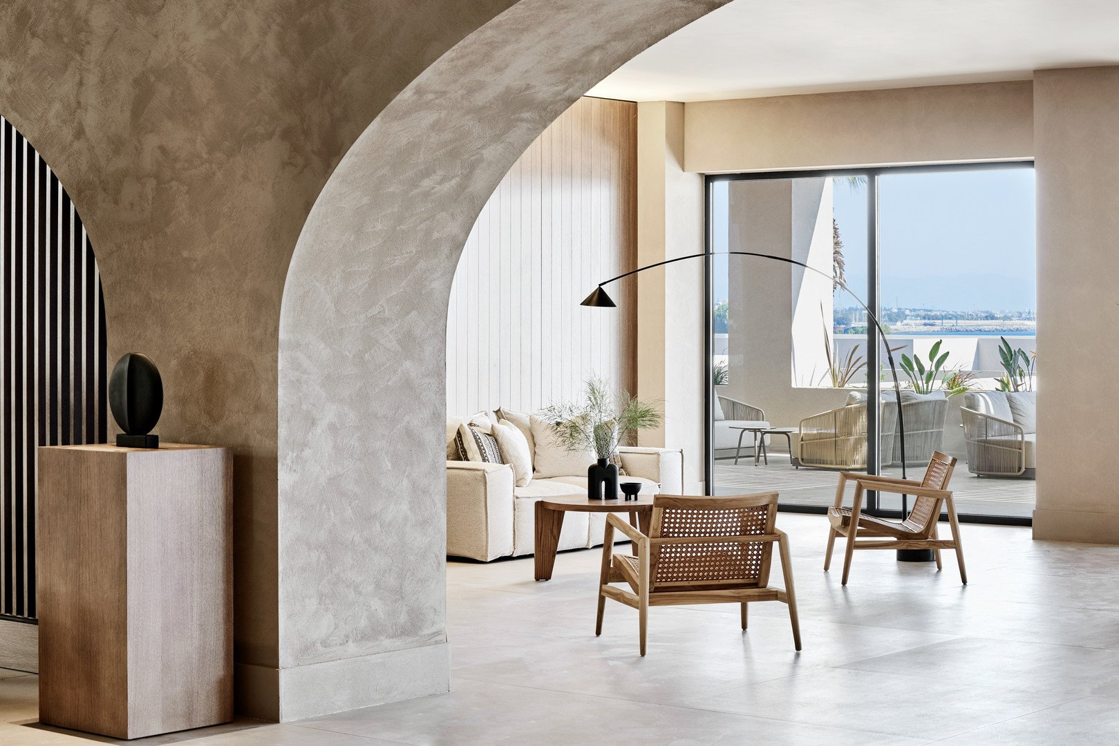 Világos, természetes színek, prémium anyagok és tágas terek jellemzik a belsőket, amelyekből csodás kilátás nyílik a kertre, a medencékre vagy az Égei-tengerre.
