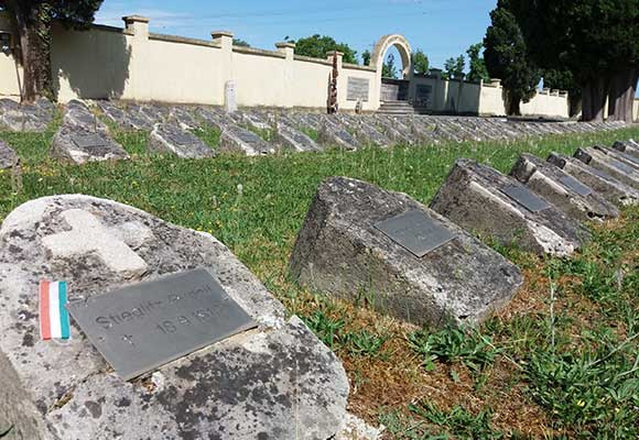 Foglianoban az osztrák–magyar katonai temetőt. Felmegyünk a Doberdó-fennsík sziklái közé, hogy a