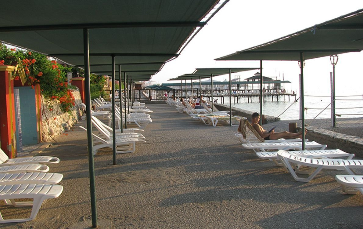 Saját kavicsos strand közvetlenül a tengerparton. A hotelhez tartozó stégről lépcsőn lehet a tengerbe jutni. A kb. 60 m hosszú partszakaszon ingyenesen használható napernyők és napozóágyak állnak rendelkezésre.