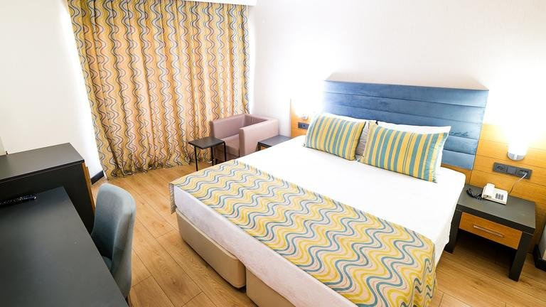 Standard kétágyas, kertre néző erkélyes szobák fürdőszobával, televízióval, telefonnal, minibárral (érkezéskor vízzel feltöltve). Wi-Fi és széf felár ellenében vehetők igénybe. A szobák pótágyazhatók, központi légkondicionálás működik.