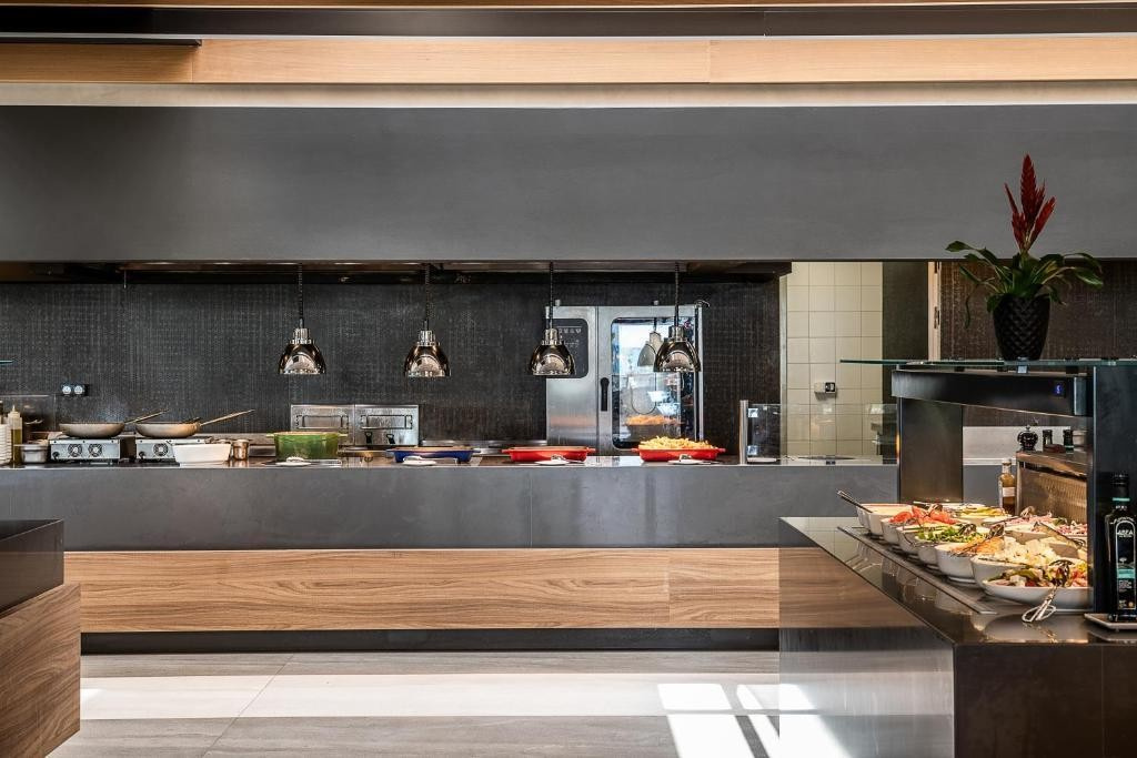 - családi-suitek - hálószoba és nappali tolóajtóval elválasztva, 2 fürdőszoba, külön közös medence, minibár (bekészítés tartózkodásonként 1x), 3 a'la carte-étterem (tartózkodásonklnt 1x), VIP reggeli a Kouzina étteremben
