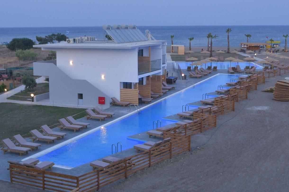 Fekvése: Az Evita Bay szálloda Falirakiban található, kb. 1,5 km-re a város központjától és csak néhány lépésre a tengerparttól. A hotel a rodoszi nemzetközi repülőtértől kb. 16 km-re, Rodosz várostól és a Mandraki kikötőtől kb.12 km-re, a Kalithea forrsától pedig kb. 2 km-re fekszik.