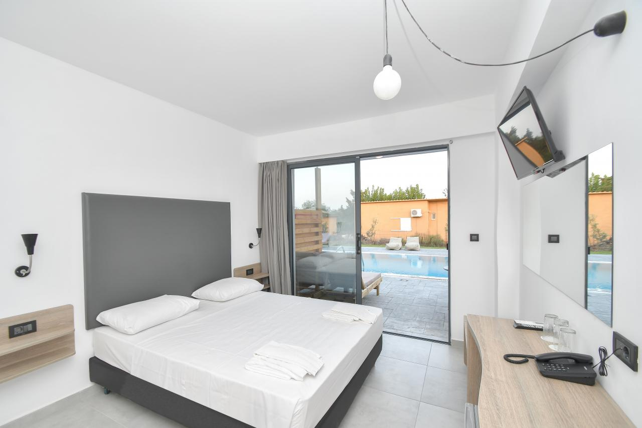2 alapterületű, egyénileg szabályozható légkondicionálóval, minihűtővel, szatellit Tv-vel, széffel, ingyenes Wifi-vel, hajszárítóval, fürdőszoba/WC-vel és erkéllyel vagy terasszal felszerelt. A Sharing Pool típusú szobák közvetlen medencekapcsolattal rendelkeznek.
