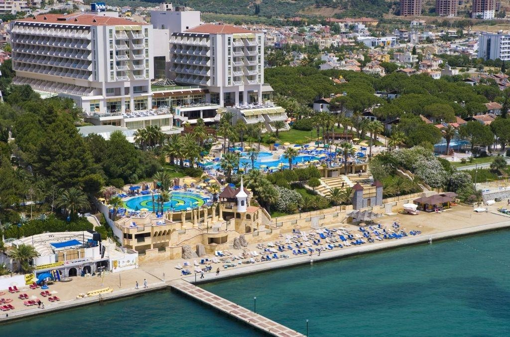 A stílusos, 5 csillagos szálloda kiváló helyen, közvetlenül a 150 m hosszú homokos tengerparton, Kusadasiban található. A vendégeket több étterem, 2 nagy medence, gyermekmedence, wellness-részleg, strandbár és szórakoztató programok is várják.