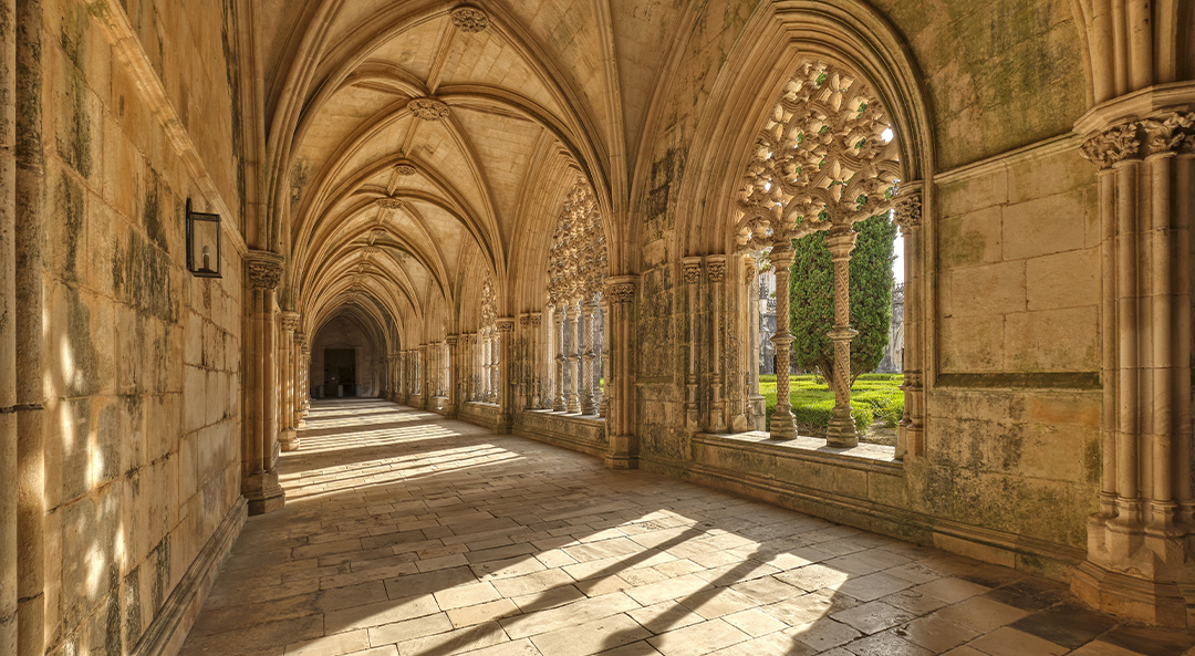 ">katedrálisát Batalhában. Lenyűgöző építészeti remekmű a templom és annak kerengője, de még ezt is felülmúlja a Befejezetlen Kápolna. Nem véletlen a „kőbe vésett csipke” becenév. A portugál nemzeti stílus, amely Mánuel királyról kapta a nevét, itt a gótikával fonódik össze. Érthető, hogy ez is az UNESCO Világörökség Listáján szereplő látványosság, csakúgy, mint Tomar, Porto és Guimaraes. Tovább utazva az alcobacai