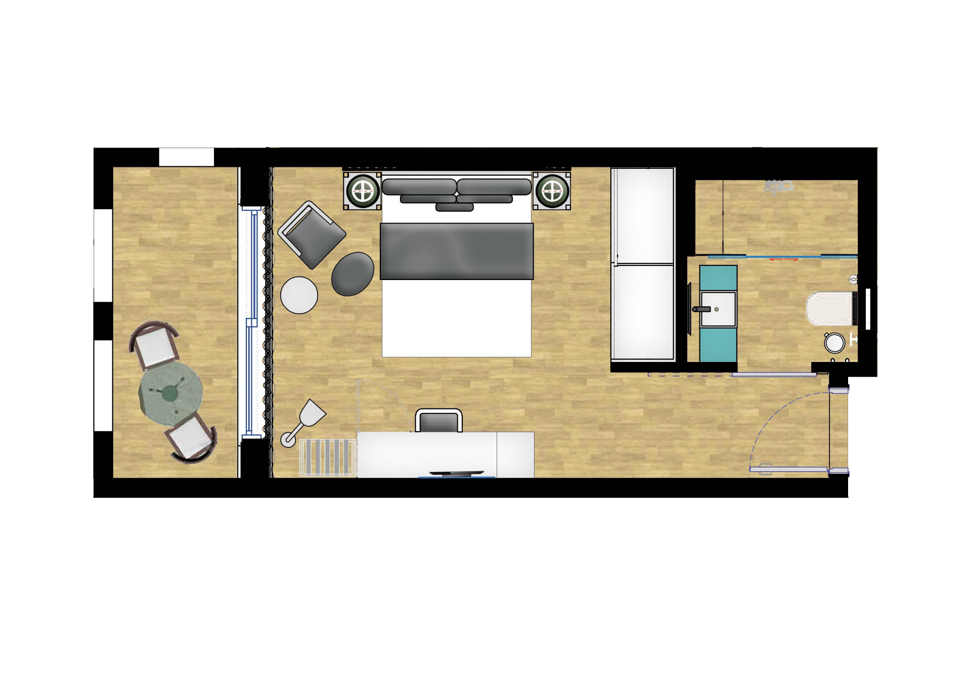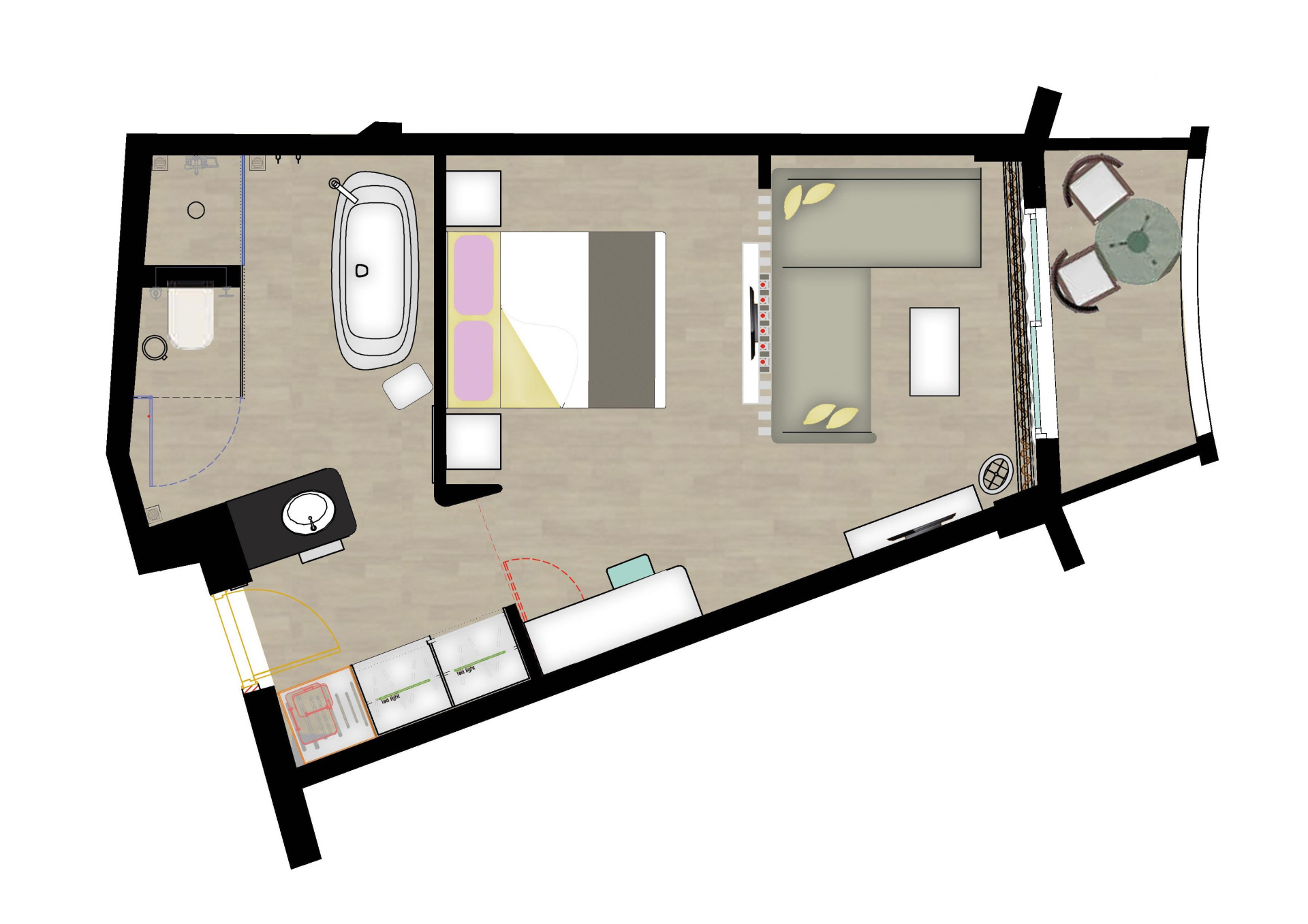 - "Flamingo" kétágyas szobák - szoba nappali résszel, tágas fürdőszoba káddal, design bútorzat flamingó motívumokkal