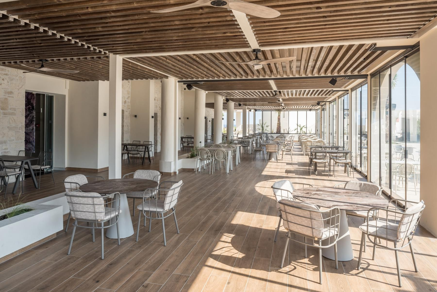 A nemrégiben felújított, 5 csillagos, több épületből álló szálloda csendes helyen, távolabb helyezkedik el a nyüzsgő üdülőfalutól, Fodelétől. A modern szobákkal rendelkező, nagy területen található létesítmény közvetlenül a homokos strand mellett fekszik, kb. 3 km-re a központtól, ahol számos étterem és üzlet áll rendelkezésre. A szállodához aquapark is tartozik, így kitűnő választás gyermekes családok számára. Az épület egy domboldalba épült, ezért lépcsőkön lehet eljutni az egyes részekre, illetve kisvonat közlekedik az aquaparkhoz.