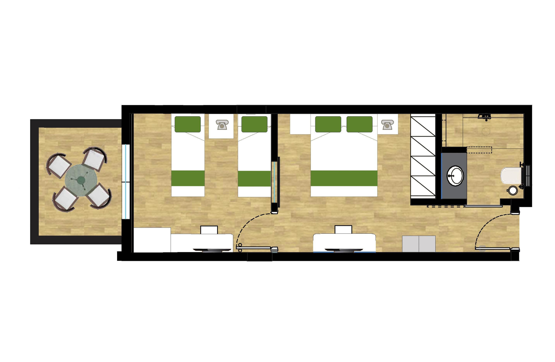 - Superior-családi szobák - hálószoba külön szobaként, minden szobában saját légkondicionáló és TV, kávé-/teafőző