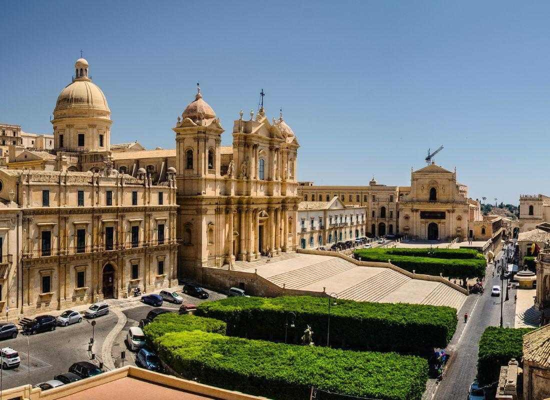 Reggeli után ismét egy Világörökségi helyszín szerepel a programban. Noto is az 1693-as földrengésnek köszönheti hírnevét, hiszen amellett, hogy a romokat itt is szicíliai barokk stílusban építették újjá, a barokk rendezettség szabályai szerint az utcaszerkezetet is átalakították. Aranyvárosnak is nevezik, hiszen az utcaképet a sárgás színű, könnyen faragható homokkőből készült díszes homlokzatok teszik egyedivé.