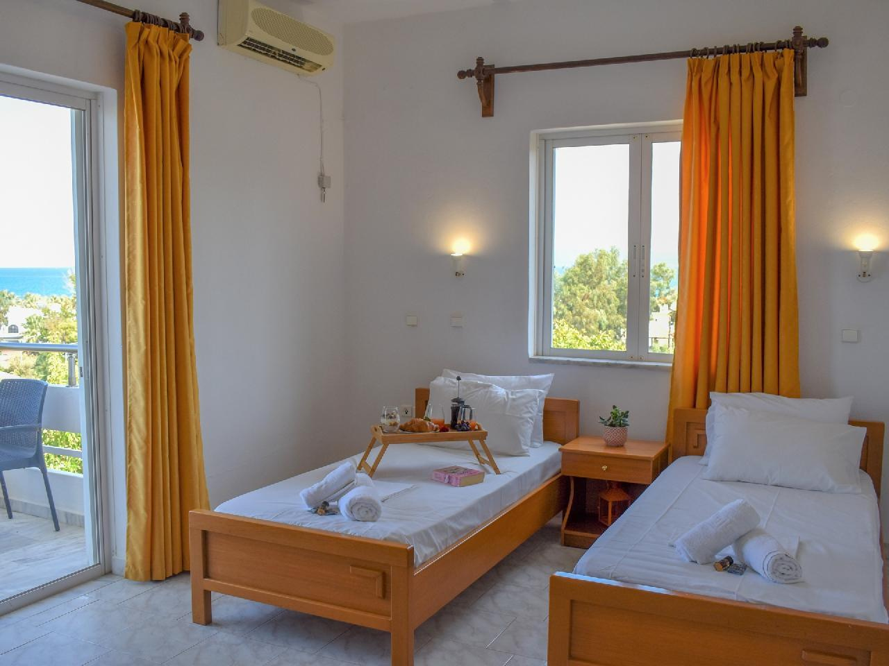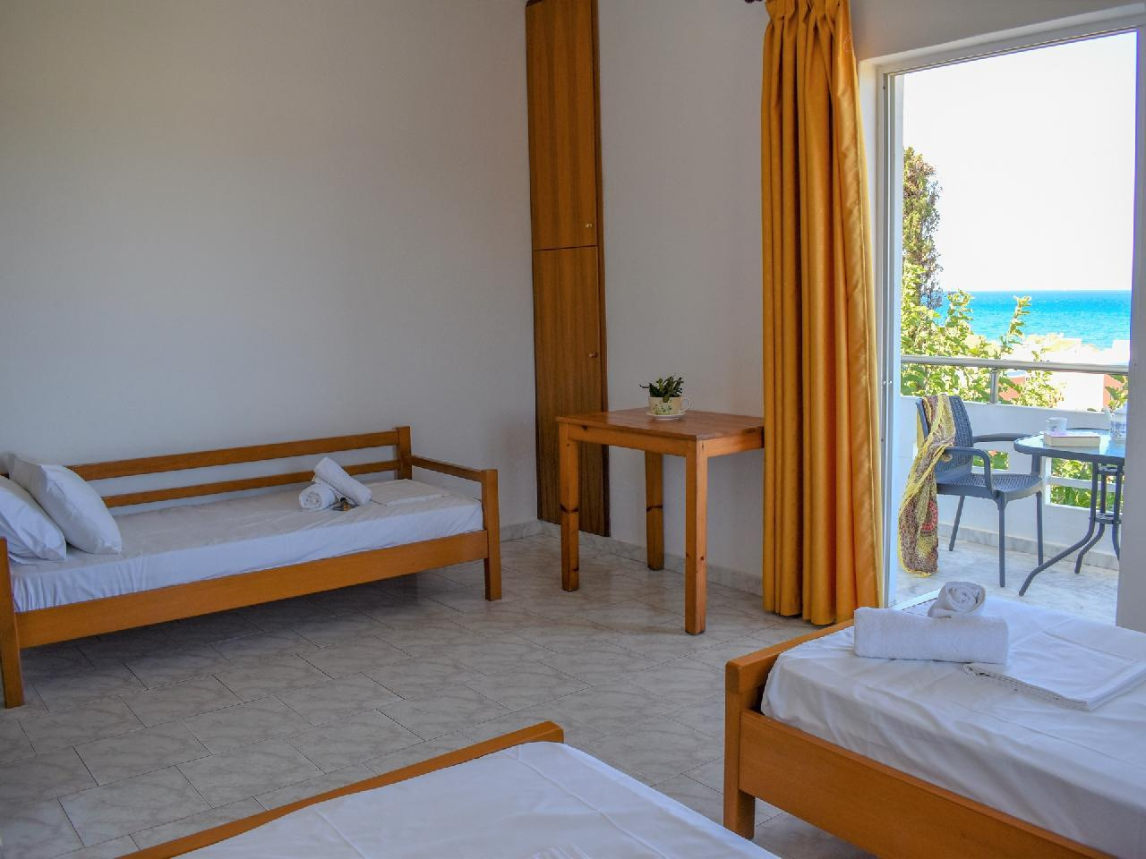 2 és 4 fős emeleti és 2 fős földszinti stúdiókban melyekhez konyhasarok, hűtő, fürdőszoba tartozik. Ingyenes WiFi. Klíma felár ellenében kérhető. Minden emeleti stúdióból látni a tengert.
