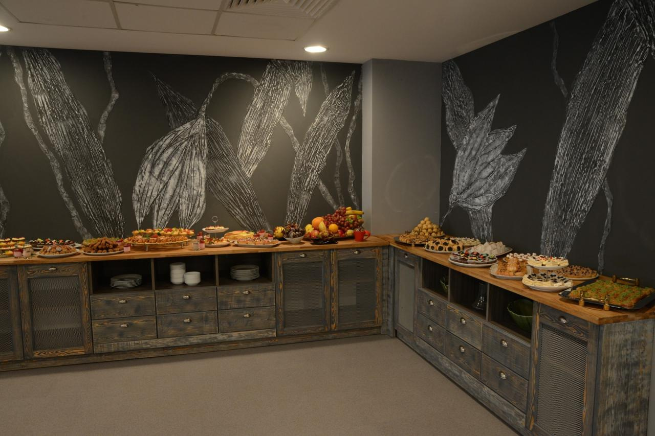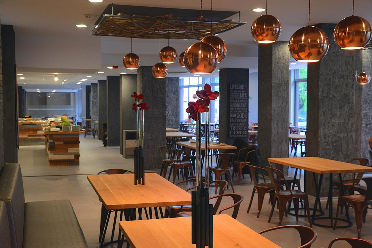 - előételek, saláták, főételek, desszertek, alkoholmentes italok az automatából, sör és bor hordóból