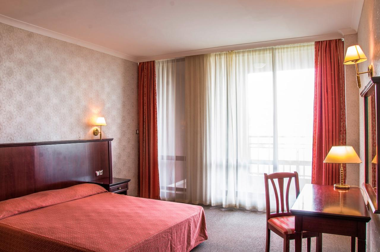 Kétágyas szoba: (max. 2+1 fő) – kb. 22 m², két külön ágy, kihúzható fotel pótágyként. Minden szobához bútorozott erkély, központi légkondicionáló, kábel TV, Wi-Fi (felár ellenében), telefon, mini hűtőszekrény, szőnyegpadló, zuhanyzós és kádas fürdőszoba, törölközők, hajszárító tartozik.