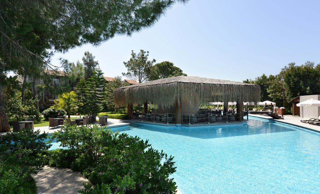 Zárja ki a világ zaját néhány napra és ébredjen madárcsicsergésre; érezze nyaralása minden pillanatában a természet nyugalmát a Gloria Golf Resort Hotel luxuskomplexumában! A főépületből, egy kerti családi blokkból, továbbá 8 kétszintes épületblokkból és luxusvillákból álló szálloda ideális választás azoknak, akik a természet ölelésében szeretnék eltölteni pihenésüket, és minőségben sem szeretnének megalkudni. A hotel paradicsomi környezetében zöldellő fenyvesek hűs árnyéka, kis tavakkal tarkított, óriási golfpályák, megszámlálhatatlan sport – és szórakozási lehetőség, ínyenc ételkülönlegességek, gyönyörű környezet és magas minőségű kiszolgálás várják. Az 5 csillagos szálloda a Gloria Serenity és a Gloria Verde hotelek mellett a Gloria lánc tagja, együttes területük több mint 2 millió nm a hozzájuk tartozó golfpályákkal és kitűnően felszerelt sportarénájukkal együtt. Az 515 szobás Gloria Golf Resort az antalyai repülőtértől 40 km-re, Belek központjától 7 km-re fekszik. A szállodát egy természetes folyó választja el saját, Kék Zászló díjjal kitűntetett, homokos-aprókavicsos, 500 méter hosszú strandjától, melyre egy hídon át lehet eljutni. A központba helyi buszjárattal (dolmussal) vagy taxival könnyedén bejuthatunk.