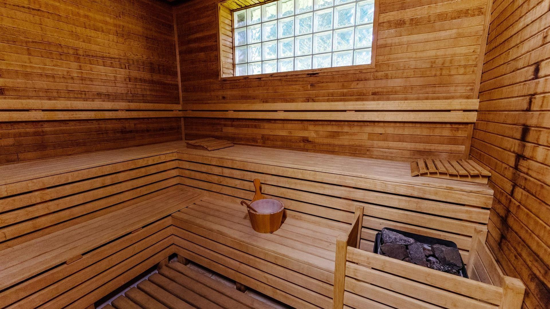 A saját homokos-kavicsos strand 150 méterre található a szállodától.