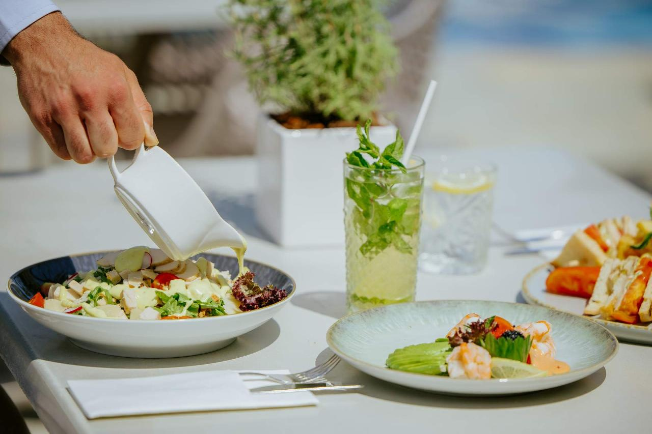 Étkezés: svédasztalos reggeli. Friss gyümölcsök, pékáruk, hideg és meleg fogások, tojásételek, zöldségek, joghurtok és különféle italok – kávé, tea, friss gyümölcslevek – teszik teljessé a kínálatot.. A félpanziós ellátás a reggelin kívül vacsorát is tartalmaz. A vacsora is svédasztalos formában zajlik, amely a nemzetközi és helyi ízek változatos kombinációját nyújtja. A vendégek helyi ciprusi specialitásokat is kóstolhatnak, valamint élvezhetik a tematikus estek változatos fogásait. A teljes ellátás a három főétkezést tartalmazza (a félpanzió + ebéddel egészül ki). Az all inclusive ellátás magában foglalja a napi három főétkezést – reggelit, ebédet és vacsorát –, amelyeket svédasztalos formában érhető el, nemzetközi és helyi ízek változatos kombinációját kínálja. Az étkezések mellé különféle italokat kínálnak, beleértve a helyi alkoholos italokat, borokat, valamint az alkoholmentes frissítőket is, amelyeket a korlátlanul fogyaszthatnak a vendégek 10-23 óra között. A vendégek emellett több bár közül választhatnak, ahol széles italválasztékot kínálnak. Az italválaszték a szálloda által meghatározott az itallapokon ALL jelöléssel található. Mind a reggeli, ebéd és vacsorák során kiemelt figyelmet fordítanak az ételek minőségére, frissességére, és igyekeznek minden ételallergiát vagy diétás igényt is kielégíteni. Napközben snackek és könnyű ételek is elérhetők, valamint jégkrémek, kávé és sütemények a délutáni órákban.