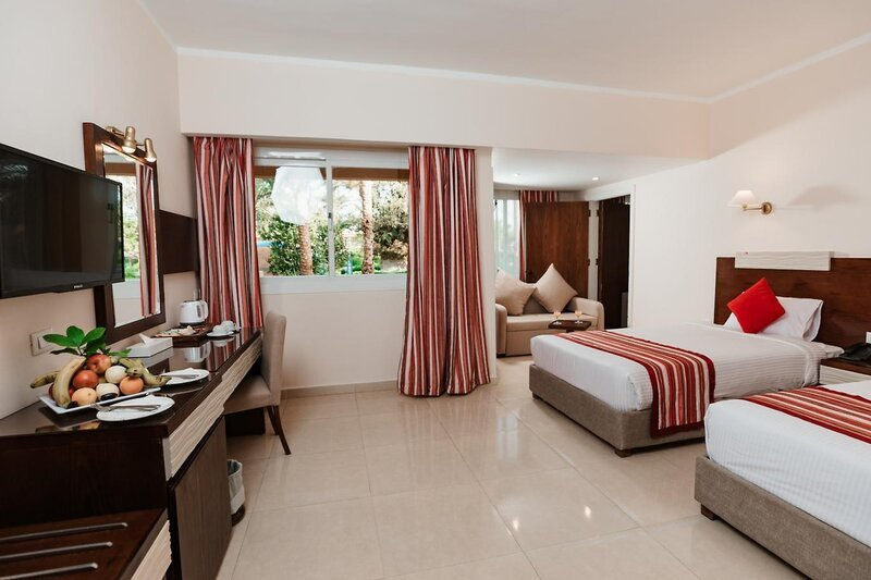 A szálloda Hurghadától északnyugatra, közvetlenül a saját széles, homokos tengerpartján fekszik, mólóról lehet bemenni a mély vízbe (fürdőcipő használata javasolt).