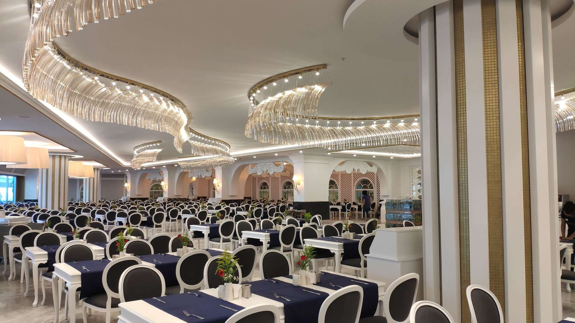 Fekvése: A 2019-ben épült, 382 szobás, egyedi belsőépítészeti elemekkel megalkotott, trendi szálloda az alanyai régió egyik ikonikus épülete. A hotel különleges dizájnjának, vendégszerető személyzetének, magas minőségű szolgáltatásainak és ínyenc konyhájának köszönhetően vált az ide látogatók egyik kedvencévé. A szállodának vannak ugyan gyermekszolgáltatásai, azonban elsősorban inkább nászutasoknak, pároknak és baráti társaságoknak ajánljuk. A hotel az antalyai repülőtértől 101 km-re, Alanya központjától 22 km-re található, Avsallar üdülőhelyen, közvetlenül saját, homokos tengerpartján. A tengerben sziklák és kavicsok előfordulnak. A közeli városokba taxival, vagy dolmussal juthatunk el. Szolgáltatások: Medence napernyőkkel és napozóágyakkal, belső medence jakuzzival, külső és belső gyermekmedence, 2 csúszda, főétterem terasszal, 2 snack étterem, cukrászda, a’la carte étterem, 8 bár, nappali animációs programok, esti show-műsorok, alkalmanként élő zene és zongorakoncert, minimozi, miniklub (4-12 éves korig), minidiszkó, szabadtéri és fedett játszótér, törökfürdő, szauna, gőzfürdő, fitneszterem, asztalitenisz, darts, strandröplabda (előzetes foglalással), WIFI a szobákban és a szálloda közösségi helységeiben. A hotel saját strandján a napernyők és napozóágyak, valamint a strandtörölközők használata ingyenes. Térítés ellenében: Spa központ szolgáltatásai, jakuzzi a Spa-ban, törökfürdő kezelései, masszázs, szépségszalon, fodrászat, vízi sportok, játékterem, biliárd, számítógépes játékok, üzletek, orvosi ellátás, privát pavilonok. Elhelyezés: Az ízlésesen berendezett, modern szobák mindegyike központi légkondicionálóval, telefonnal, hajszárítóval, műholdas LED tévével, minibárral, vízforralóval, papuccsal, széffel, WIFI internetkapcsolattal és erkéllyel rendelkezik. A Standard szobák 35 nm-esek. A „Love” standard szobák kimondottan nászutaspárok részére dekoráltak, 35 nm-esek, tájra/tengerre/oldalról tengerre néznek. A Swarovski lakosztályok 75 nm-esek, jakuzzival felszereltek, maximum 2 felnőtt + 1 baba helyezhető el bennük. Nászutas vendégei részére a hotel az alábbi szolgáltatásokat ingyenesen biztosítja: nászutas szobai dekoráció, érkezéskor a szobában pezsgő és török édességek, egy alkalommal reggeli a szobában, 10% kedvezmény masszázsra, illetve a privát pavilonok bérlésére. Ellátás: Ultra all inclusive: reggeli, ebéd és vacsora büférendszerben, gyermekbüfé a vacsoránál, kései reggeli, diétás és vegetáriánus büfé ebédnél és vacsoránál, éjszakai minibüfé (22:00-00:00 között), korai reggeli minibüfé (00:30-06:00 között), délutáni tea/kávé/sütemények, cukrászda (10:00-19:00 között), frissen facsart narancslé a reggelinél, fagylalt bizonyos időpontban, jégkrém szerviz gyermekeknek, számos helyi és import alkoholos és alkoholmentes ital (08:00-00:00 között), naponta üdítők, víz, sör, snack és édesség a minibárból. Térítés ellenében: bizonyos import italok, prémium és palackozott italok, frissen facsart gyümölcs- és zöldséglevek a vitaminbárban, nemzetközi a’la carte étterem (előzetes foglalással), szobaszerviz, vízipipa.Egyéb: