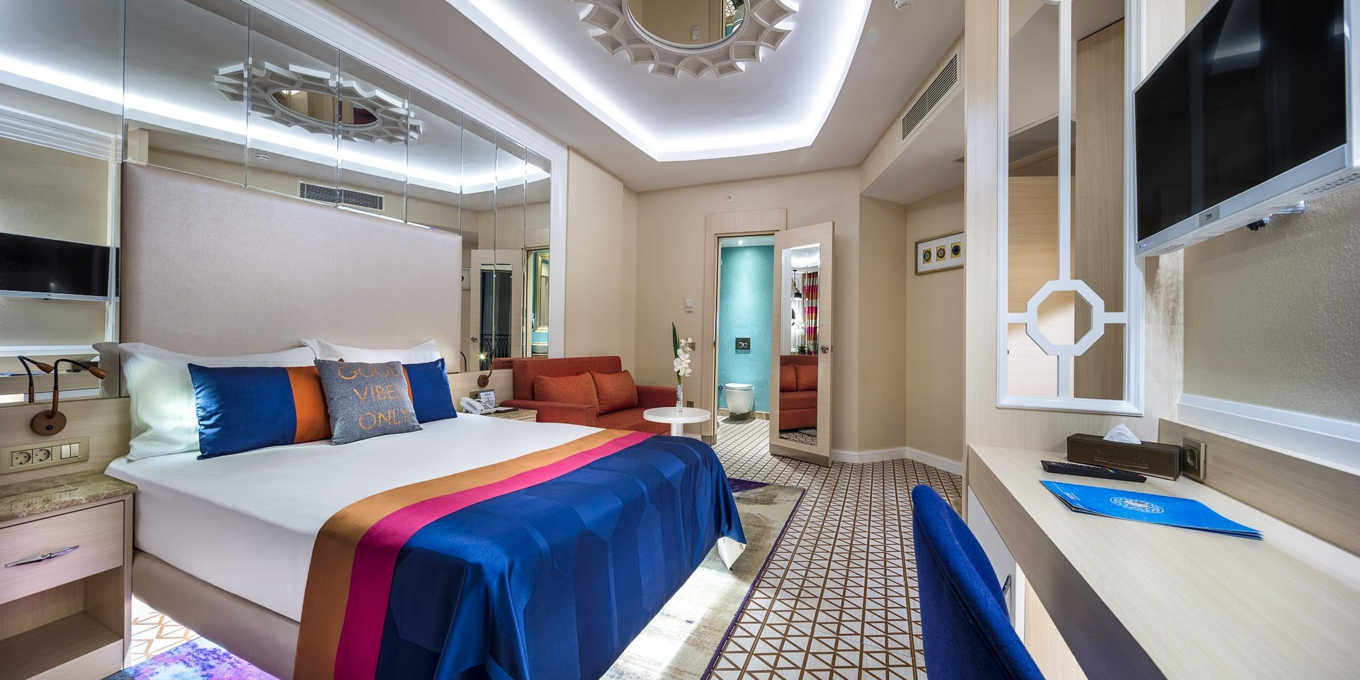 - Pool & Slide-szobák - Wonderland Hotel szomszédos részében lévő szobák (egy kis úton át érhető el), az aquapark és a medencék ebben a részben találhatók, a medence és a csúszda nem tartozik a szobához