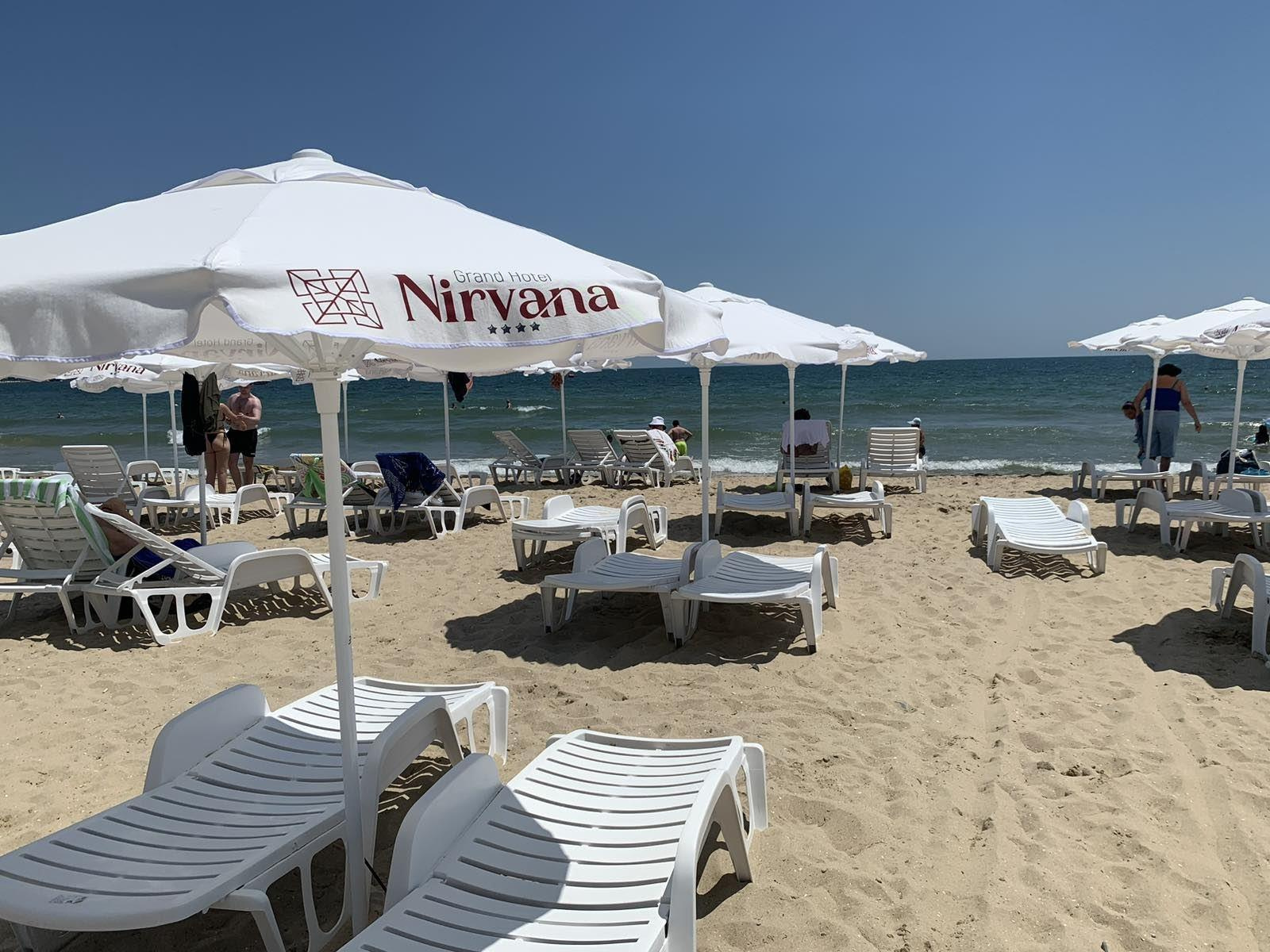 A strandon a nyugágyak és napernyők ingyenesek.