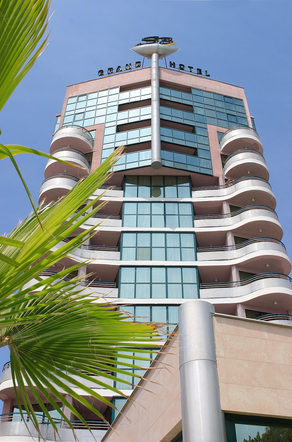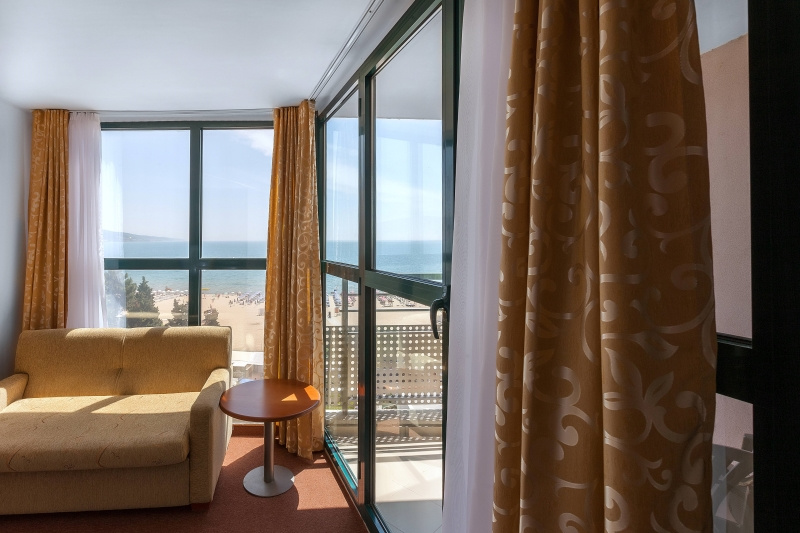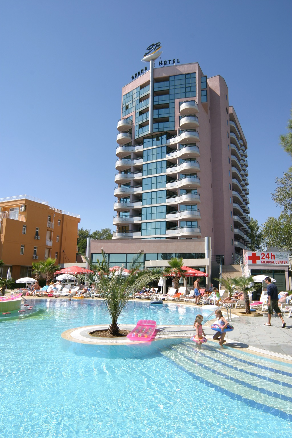 Grand Hotel Sunny Beach a Napospart (Sunny Beach) központjától körülbelül 500 méterre található, közvetlenül a tengerparti sétány túloldalán, a stranddal szemben.