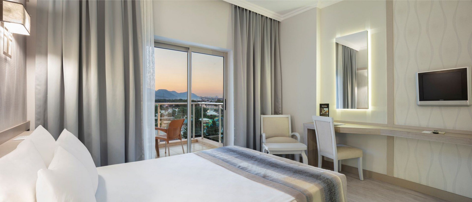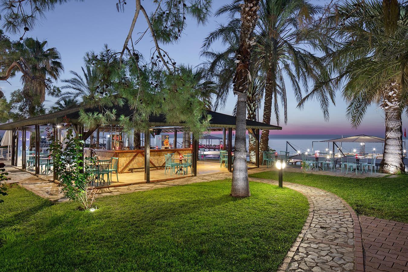 A szálloda két 5 emeletes épületből és egy melléképületből áll, utóbbi a tengerhez közelebb helyezkedik el. A kavicsos strand a helyi úton vagy aluljárón keresztül érhető el. A gyerekek számára miniklub, animációs programokon és gyermekmedence is rendelkezésre áll. Minden korosztály számára ajánljuk.
