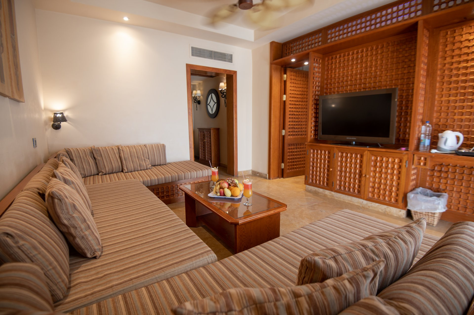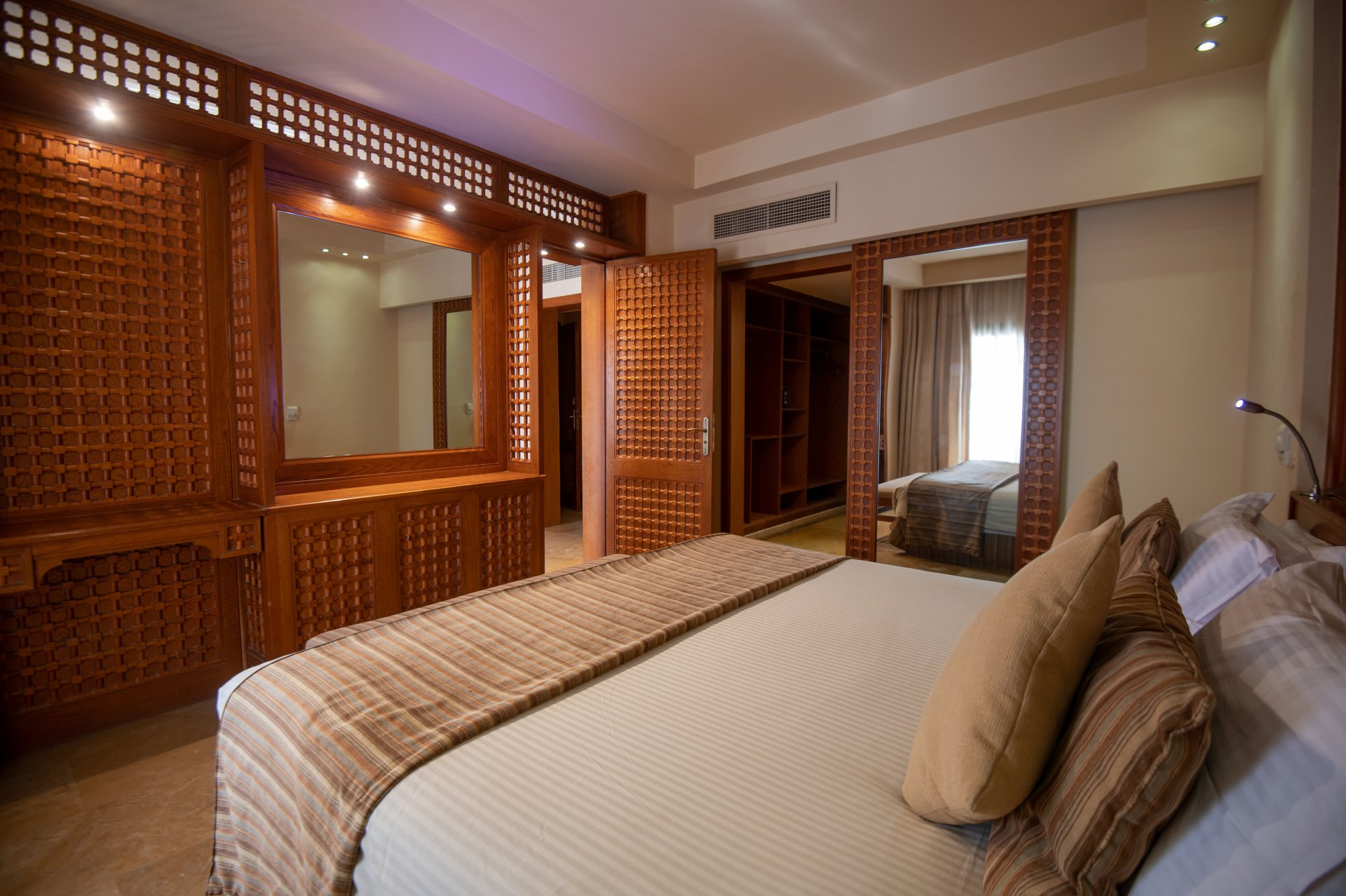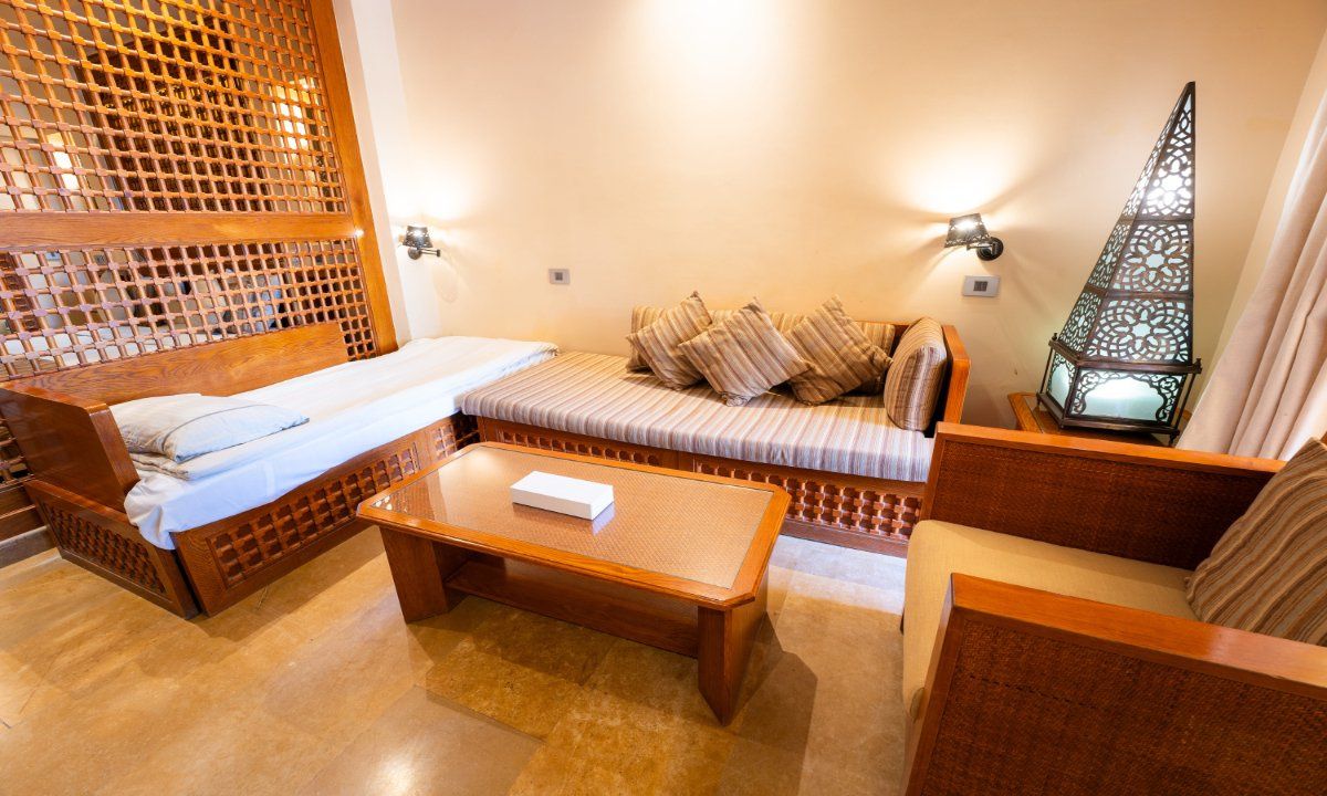 SZOBÁK: az ízlésesen berendezett JUNIOR SUITE szobák (kb. 52 m²) egy hálószobával és egy nagy ülősarokkal, fürdőkáddal/zuhannyal, WC-vel, hajszárítóval, mini hűtővel, műholdas LCD síkképernyős TV-vel, telefonnal, légkondicionálóval (szezonális), széffel és erkéllyel rendelkeznek. A GRAND SUITE (kb. 52 m²) típusú szobák hálóból és nappaliból állnak, többségükben tolóajtóval elválasztva (egyes típusokban rendes ajtóval, vagy esetlegesen ajtó nélkül). A CSALÁDI SUITE (kb. 62 m²) szobákban a nappali és a háló ajtóval van elválasztva. A HAPPY BABY SUITE kisgyermekes pároknak ajánlott, számos gyerekbarát megoldáson kívül (rácsos ágy, babakocsi, etetőszék, bili, játszószőnyeg) saját, bekerített kerttel is rendelkezik. Akár max. 6 fő részére is foglalható családi szobák a szomszédos Family Star Makadi ****+ hotelben kerültek kialakításra.