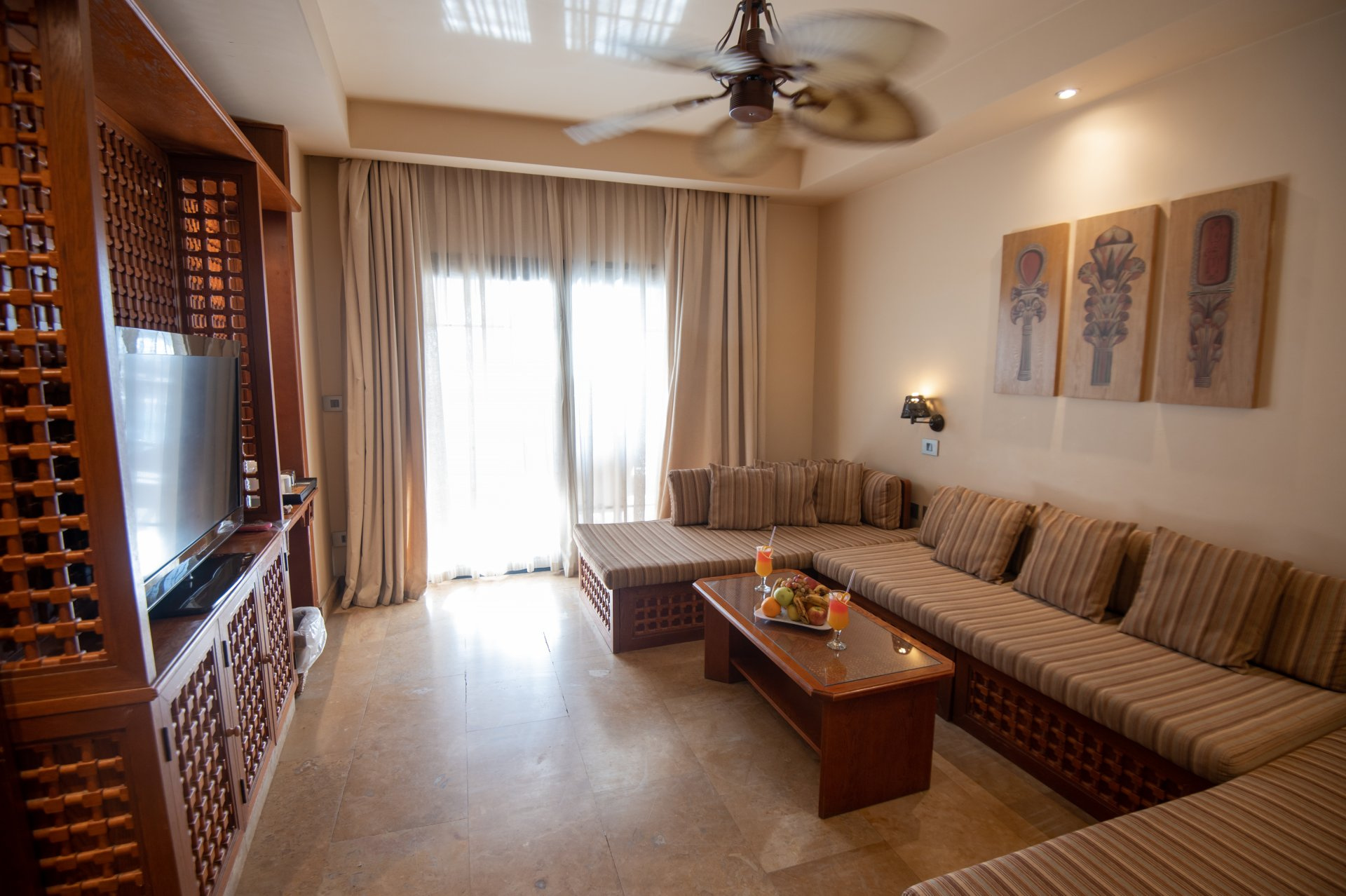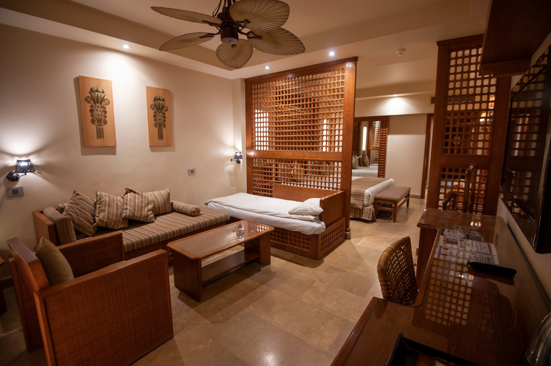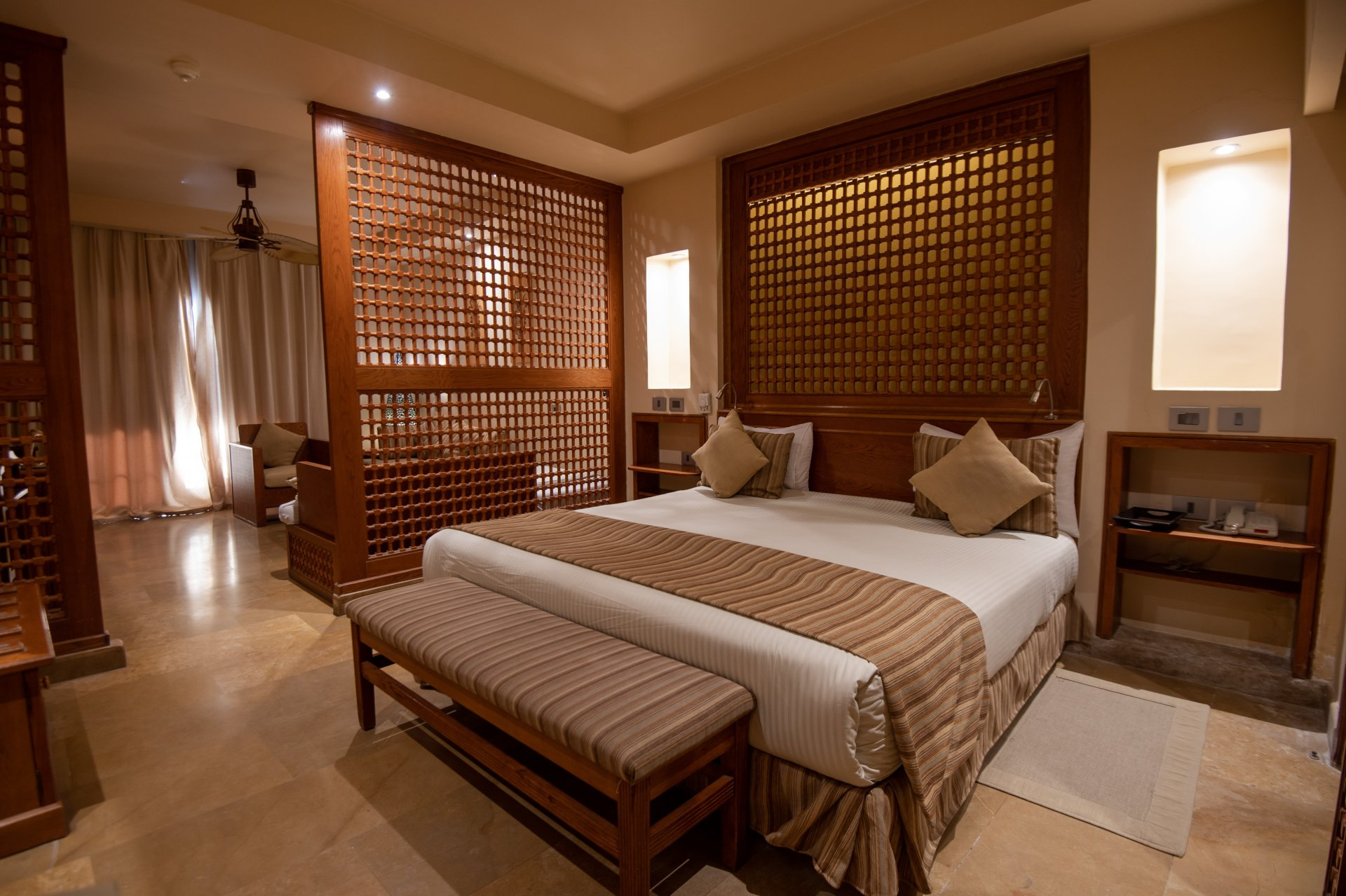 SZOBÁK: az ízlésesen berendezett JUNIOR SUITE szobák (kb. 52 m²) egy hálószobával és egy nagy ülősarokkal, fürdőkáddal/zuhannyal, WC-vel, hajszárítóval, mini hűtővel, műholdas LCD síkképernyős TV-vel, telefonnal, légkondicionálóval (szezonális), széffel és erkéllyel rendelkeznek. A GRAND SUITE (kb. 52 m²) típusú szobák hálóból és nappaliból állnak, többségükben tolóajtóval elválasztva (egyes típusokban rendes ajtóval, vagy esetlegesen ajtó nélkül). A CSALÁDI SUITE (kb. 62 m²) szobákban a nappali és a háló ajtóval van elválasztva. A HAPPY BABY SUITE kisgyermekes pároknak ajánlott, számos gyerekbarát megoldáson kívül (rácsos ágy, babakocsi, etetőszék, bili, játszószőnyeg) saját, bekerített kerttel is rendelkezik. Akár max. 6 fő részére is foglalható családi szobák a szomszédos Family Star Makadi ****+ hotelben kerültek kialakításra.