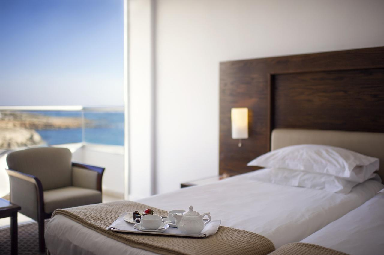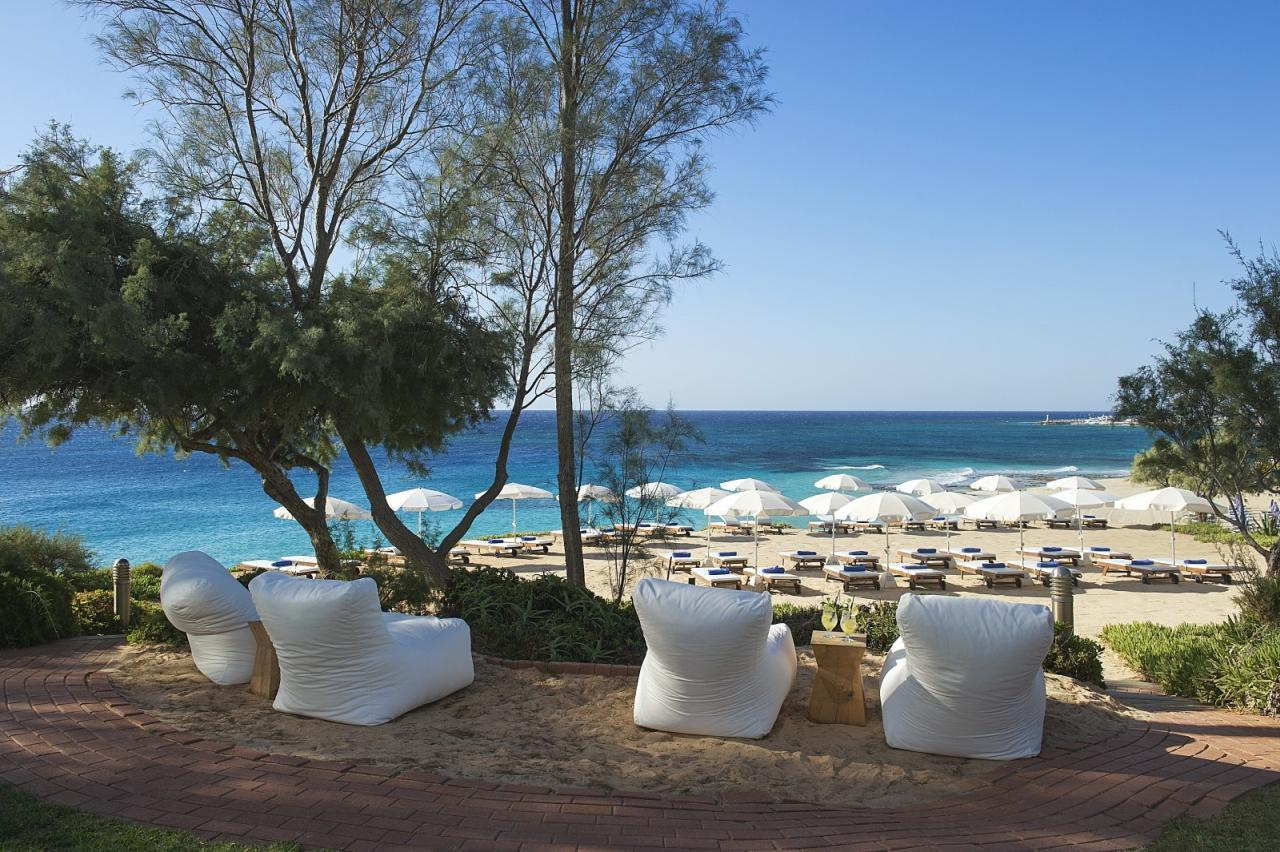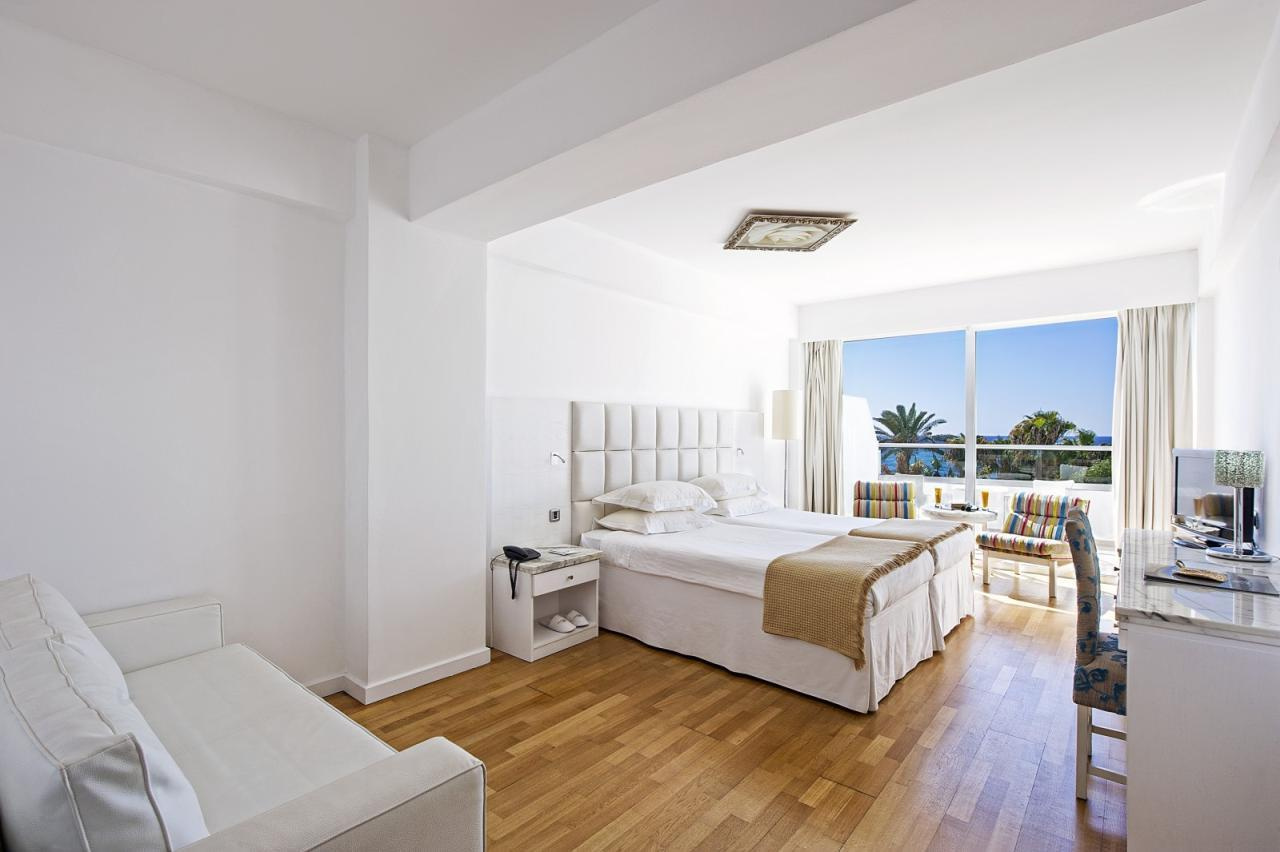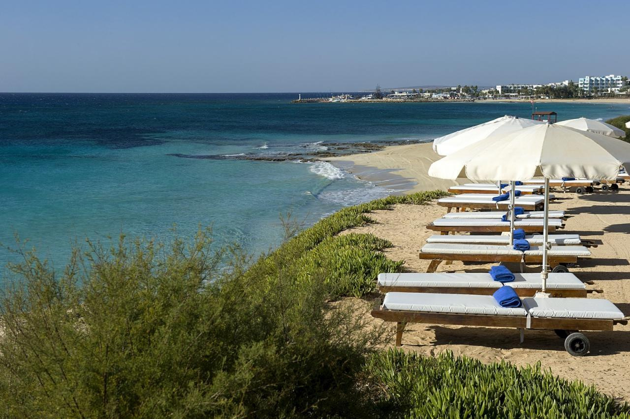 Fekvése: Ayia Napa népszerű tengerparti üdülőhely lankásabb részén, a Grecian Bay nevű öbölben, egy kiugró sziklaszirten épült, nagy parkosított területtel rendelkező 163 szobás szálloda. A szálloda Ayia Napa központjától mindössze 15 perces sétára található, így tökéletes kombinációját nyújtja a nyugalomnak és a városi pezsgésnek. A Grecian Sands közvetlenül a tengerparton helyezkedik el, ahol a vendégek élvezhetik a napozást és a kristálytiszta vizet. A szálloda közelében több híres látnivaló található, például a Thalassa Múzeum és a Cape Greco Nemzeti Park. A Grecian Sands Hotel tökéletes választás mindazok számára, akik luxuskörnyezetben szeretnék eltölteni nyaralásukat Cipruson. Tengerparti elhelyezkedése, kiváló szolgáltatásai és lélegzetelállító kilátása garantálja, hogy az itt tartózkodás felejthetetlen legyen. Foglalja le szállását most, és élvezze a ciprusi napfényt és a mediterrán életstílus varázsát a Grecian Sands Hotelben!