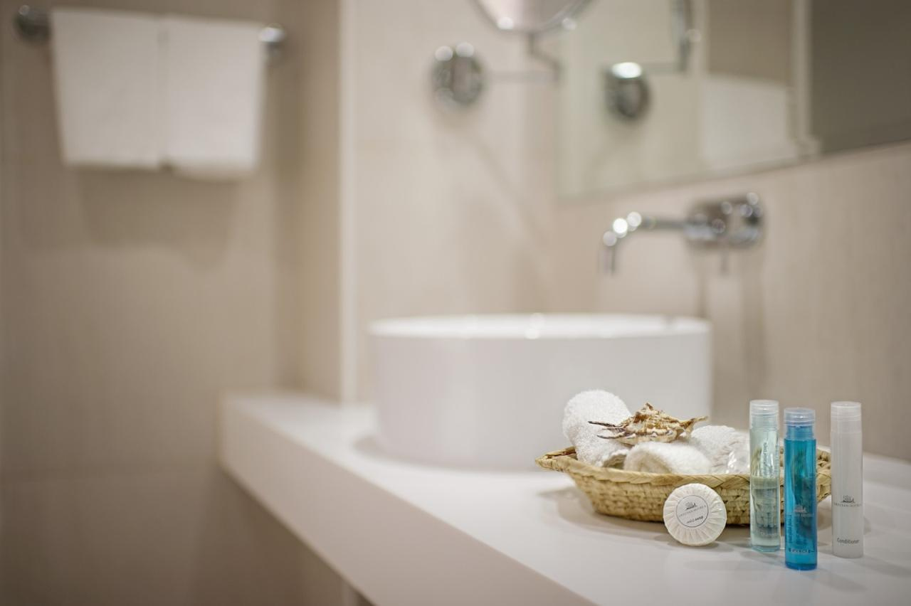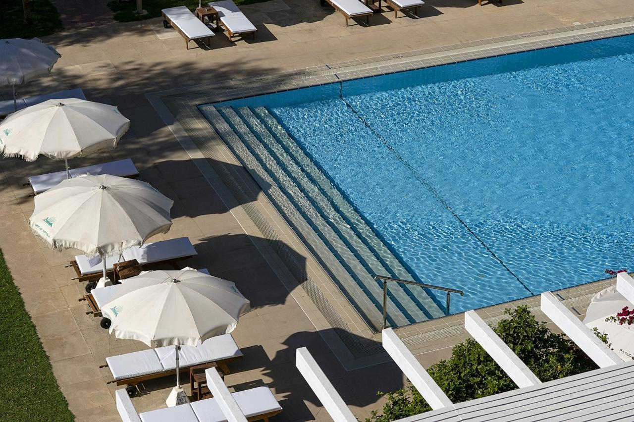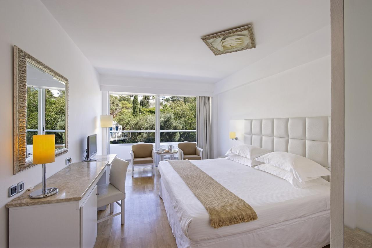 Szobák: A Grecian Sands Hotel 163 modern és elegáns szobát kínál, amelyek mindegyike kifinomult ízléssel van berendezve, hogy a vendégek a lehető legnagyobb kényelmet élvezhessék. Minden standard szoba komfortosan berendezett, egy hálószobás (~23 m2), légkondicionált, fürdőszobás, hajszárítóval, síkképernyős tv-vel, minibárral, vízforralóval (kávé és teafőzési lehetőség), telefonnal és széffel felszerelt. Minden szobához erkély tartozik szárazföldre, oldal tengerre vagy tengerre néző kilátással.