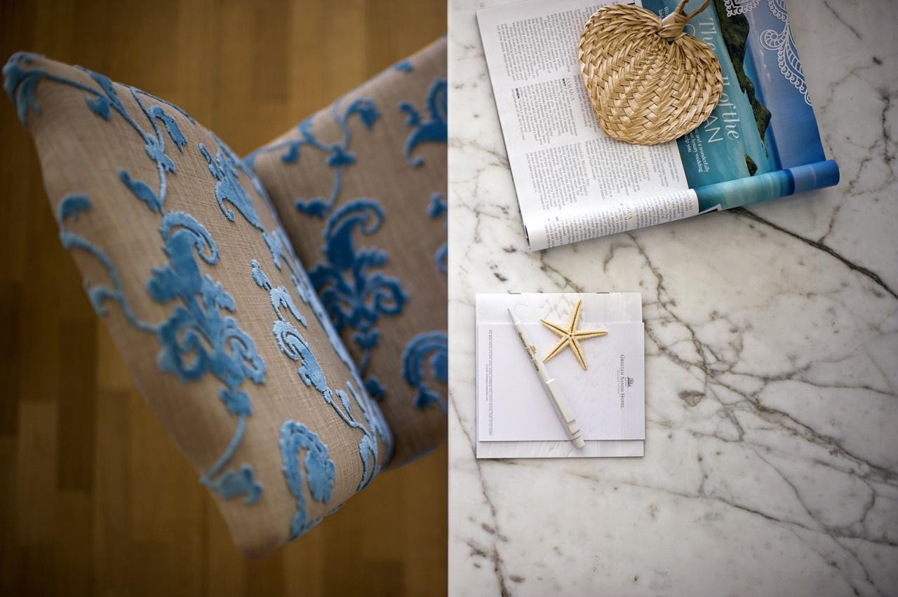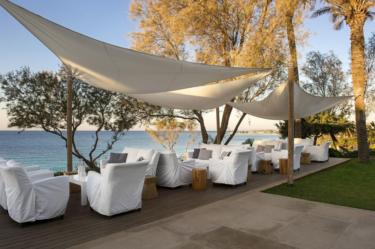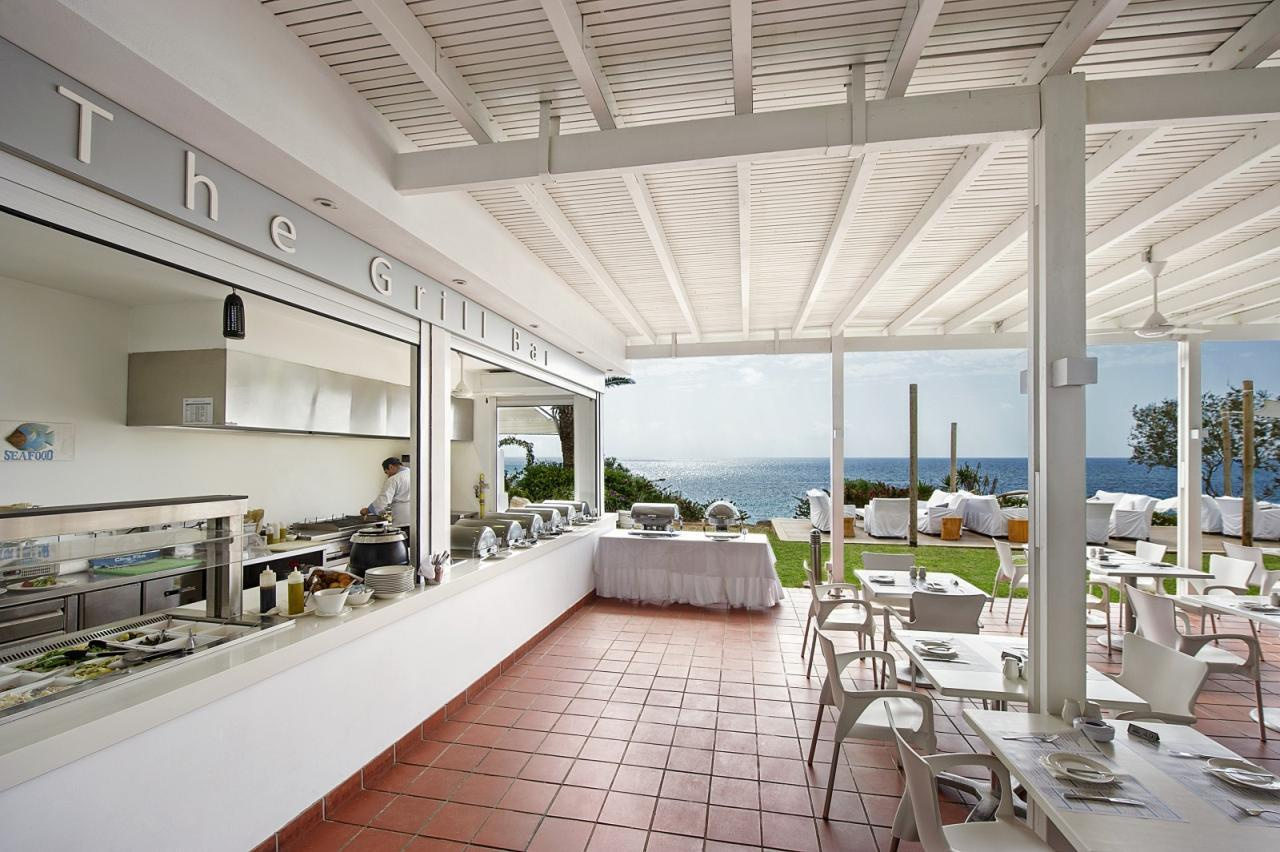 A szálloda a Grecian Bay nevű öbölben, egy kiugró sziklaszirten, közvetlenül a tengerparton épült.