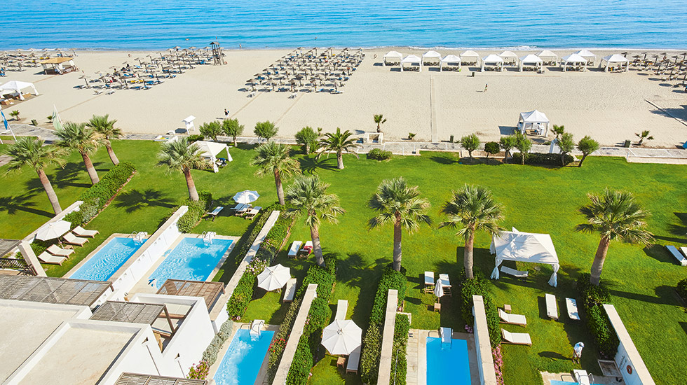 A szálloda egy központi épületből és három bungalókomplexumból áll, amelyek hagyományos krétai stílusban épültek, és 335 vendégszoba, lakosztály, bungaló és villa kapott helyet bennük.