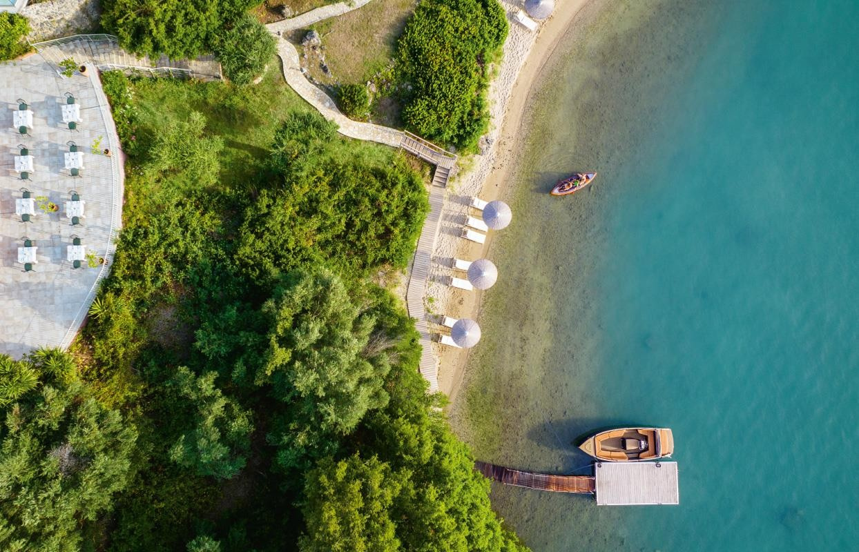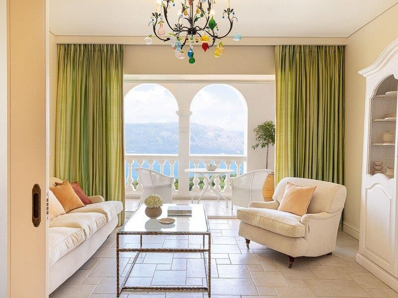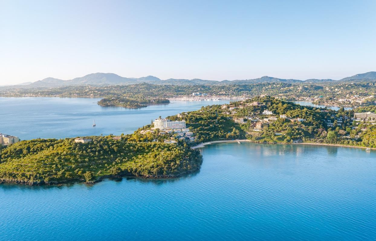 A Kommeno-félszigeten található, főépületből és bungalókból álló szállodából gyönyörű kilátás nyílik a Jón-tengerre és a sziget legmagasabb hegyére, a Pantokratorra. Saját stranddal és lenyűgöző parkkal büszkélkedhet, amelyet ciprusfás kertek és olajfaligetek öveznek. Változatos gasztonómiai kínálattal, teniszpályával, fitneszközponttal, valamint spa- és wellness-részleggel is rendelkezik.