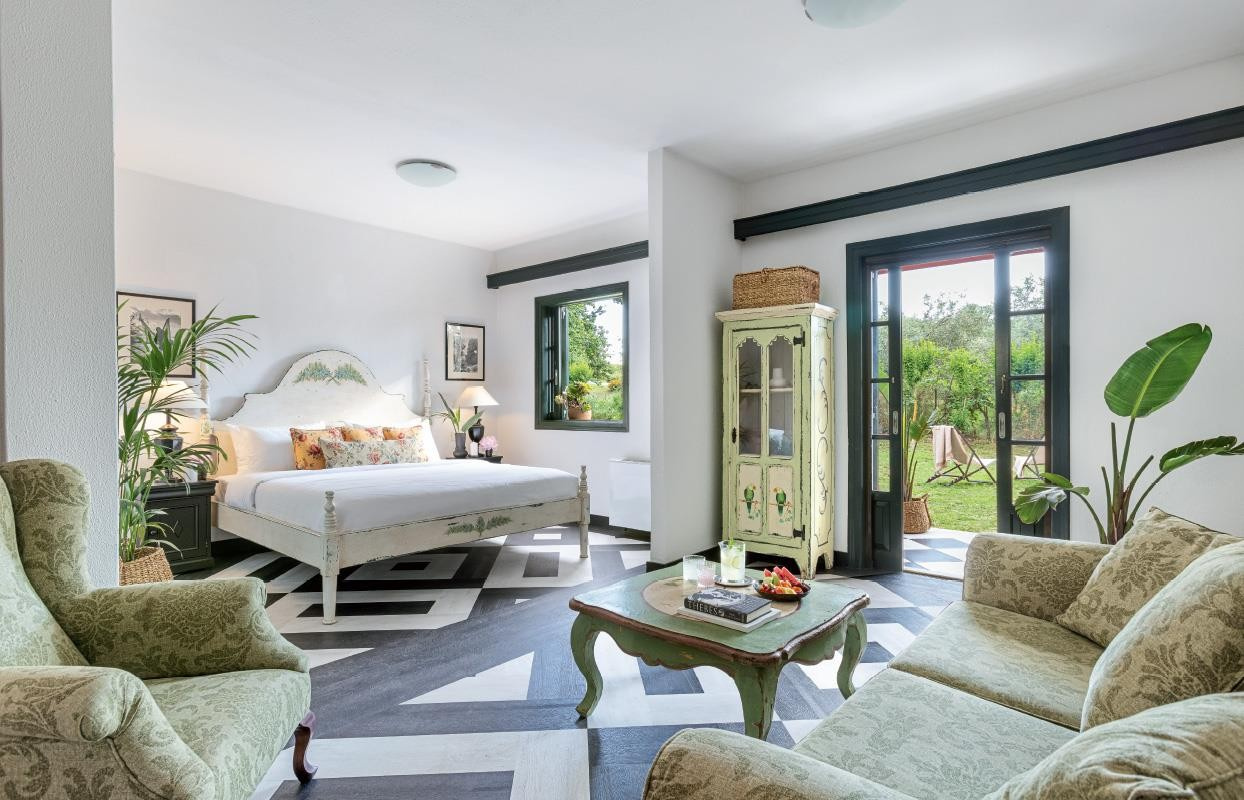 - Veranda Családi apartmanok - külön hálószoba, a földszinten helyezkednek el, kijárattal a kertbe, a Country House-ban, kertre nézők (Family Apartment Veranda & Gardens)