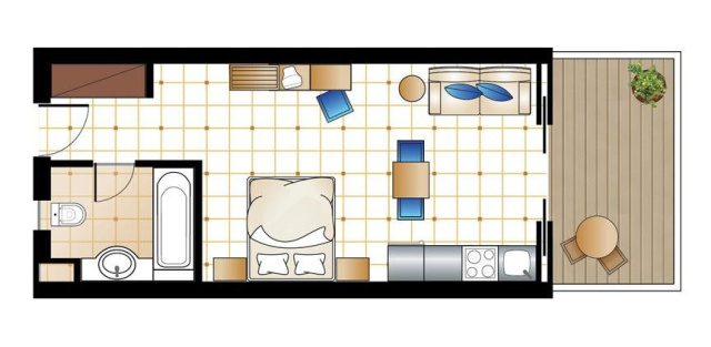 - stúdiók - kertre nézők, 1 tágas szoba, konyhasarok