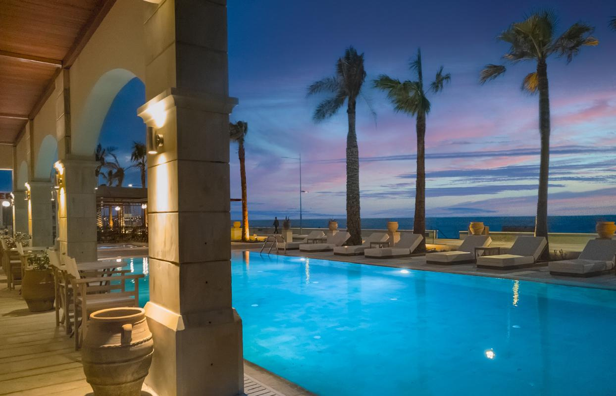 A szálloda Rethymno óvárosától kb. 2,5 km-re, a chaniai repülőtértől pedig kb. 72 km-re található. A homokos tengerparttól csupán egy út választja el a hotelt.