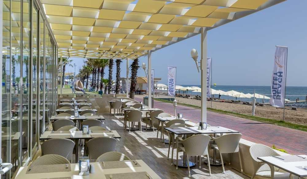 19 pavilon a strandon, foglalással, térítés ellenében. Pavilonkoncepció minibár, gyümölcs (reggel), sütemények (délután forró tea és kávéitalok). Az étel- és italszolgáltatás a pavilonban nyaraló vendégek számától függ.