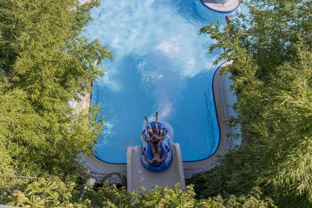 A szálloda 2 és 3 emeletes épületekből áll, amelyek közül néhányból a medencéhez is lehet jutni.