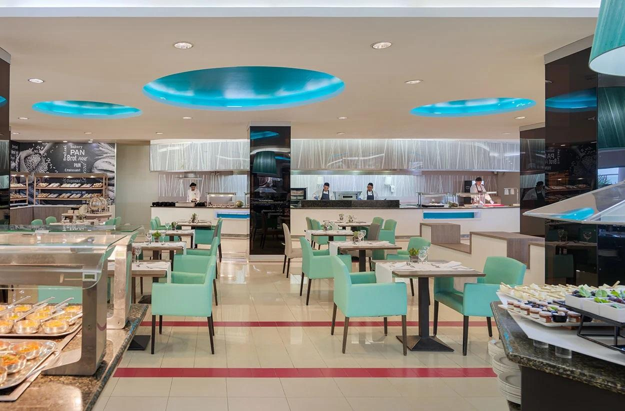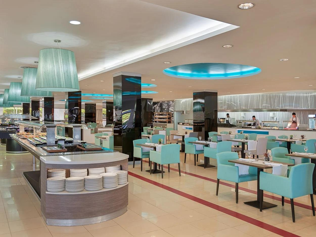 Étkeztetési szolgáltatásként a szálloda all inclusive, félpanziós ellátást és csak reggelit kínál. A reggelit svédasztalos vagy à la carte kínálatból kínálják. Az ebéd és a vacsora szintén à la carte vagy a büféből fogyasztható. Az étkezésekhez egy teraszos büféétterem (mediterrán, kalóriaszegény, gluténmentes és vegetáriánus ételek) és a medencebár áll rendelkezésre. Vacsorához a vendégeket megfelelő öltözékben kérjük az étteremben.